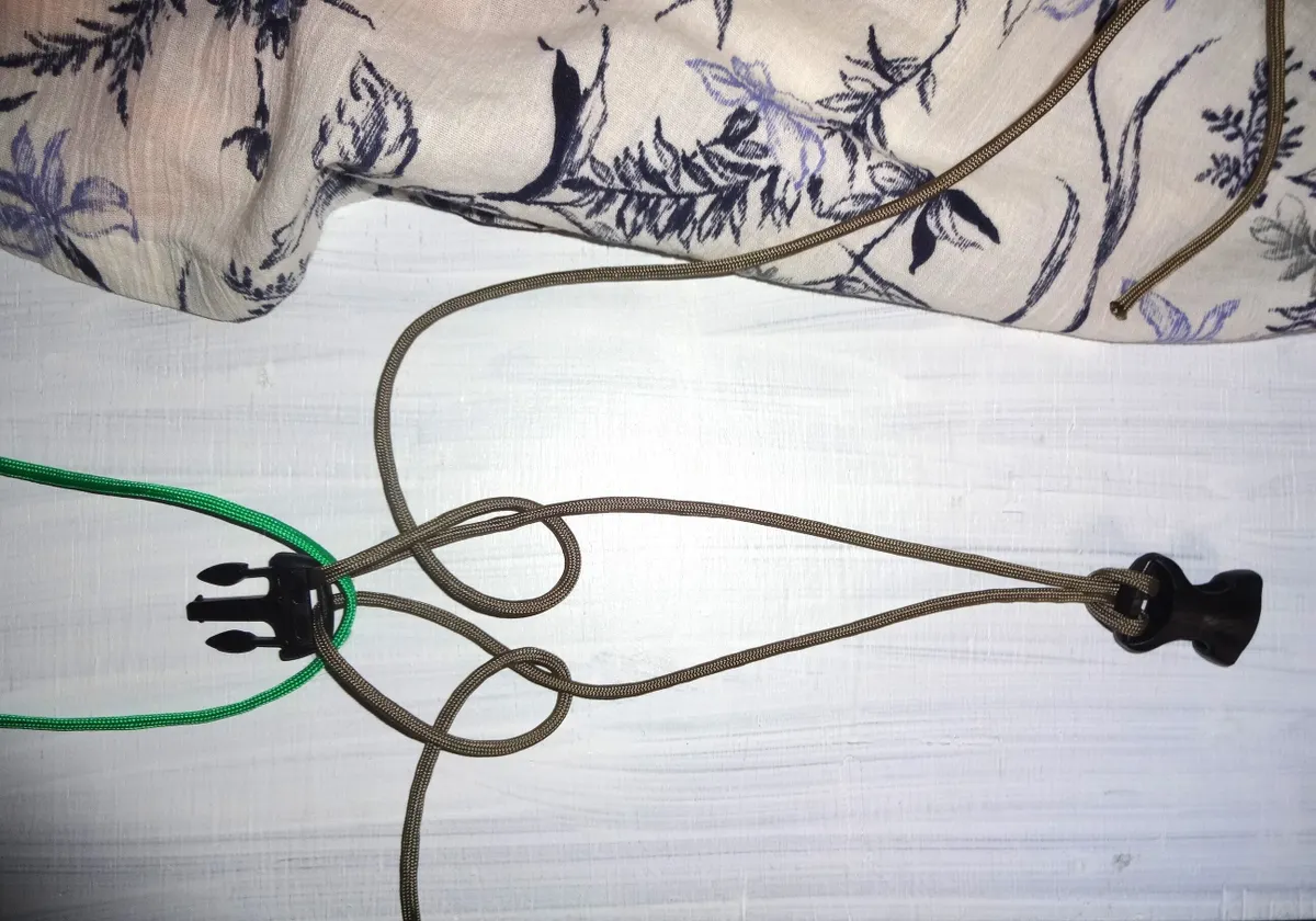 ↓ 締めるとこうなります。指でパラを つまんで 引っ張らないと締りません。