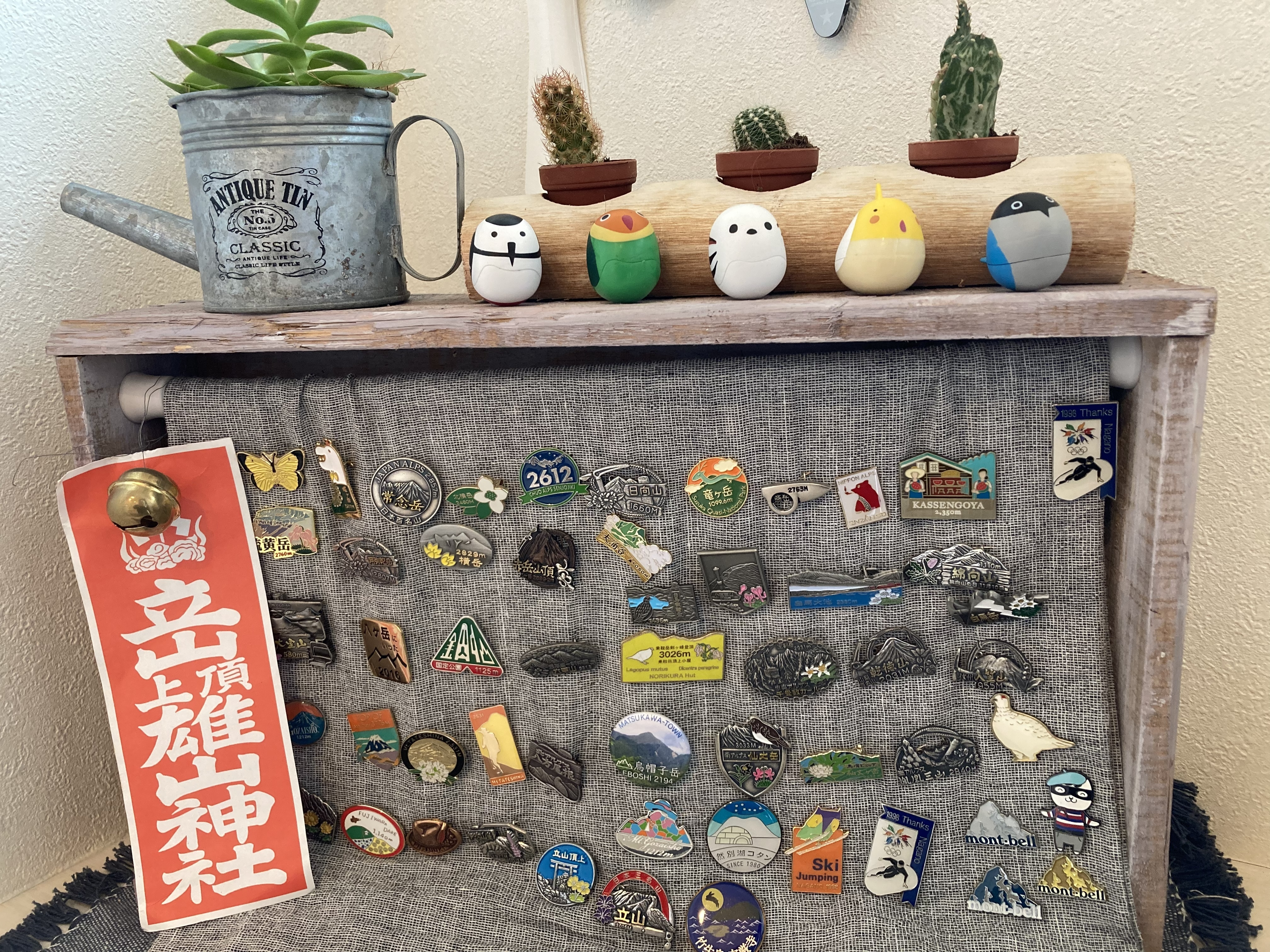 以前、山ガールだった時に思い出に買ったバッジがあるんですが、こんな風に飾ってたら素敵ですね!
