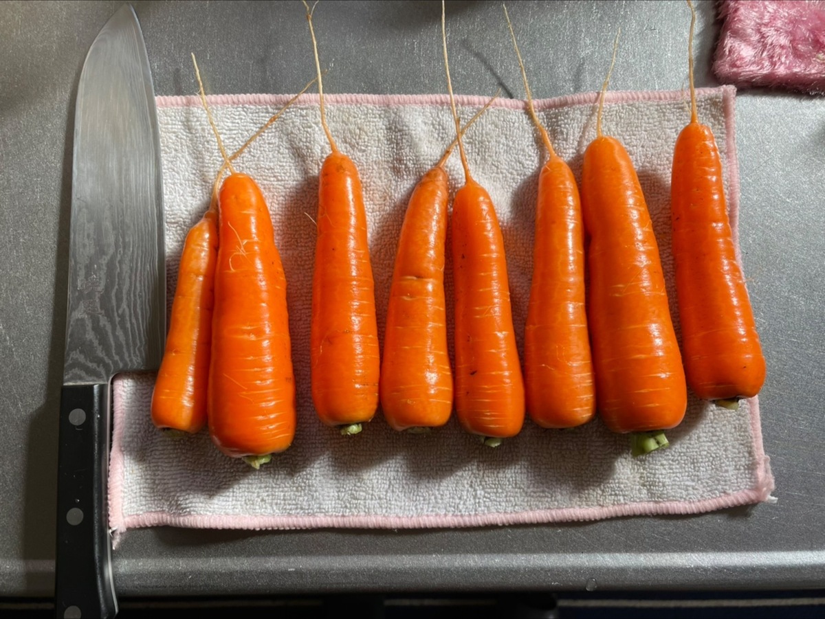 トップ > グリーン > 新年初収穫のニンジン🥕 ソラ5551 2024/01/01 11:09 新年初収穫のニンジン🥕 昨年の初収穫から二ヶ月足らず、大きさが揃ってきた感じかな。 さて、何か作りましょうか? 本年もよろしくお願い致しますm(_ _)m まだまだ収穫待ち沢山のニンジン畑です。↓ いいね 共有する 共有する X LINE リンクをコピー コメントする 1 件の返信 (新着順) ミュートしたユーザーの投稿です。 投稿を表示 non 2024/01/01 20:46 見事な人参ですね👍✨ 取り敢えずお正月なので、筑前煮かお雑煮、ナマスといったところでしょうか🔪🍲🔥 葉っぱも活用しますか? いいね 返信する ミュートしたユーザーの投稿です。 投稿を表示 ソラ5551 2024/01/02 08:26 non ありがとうございます😀 とりあえず、お雑煮に使ってます。 いいね 返信する