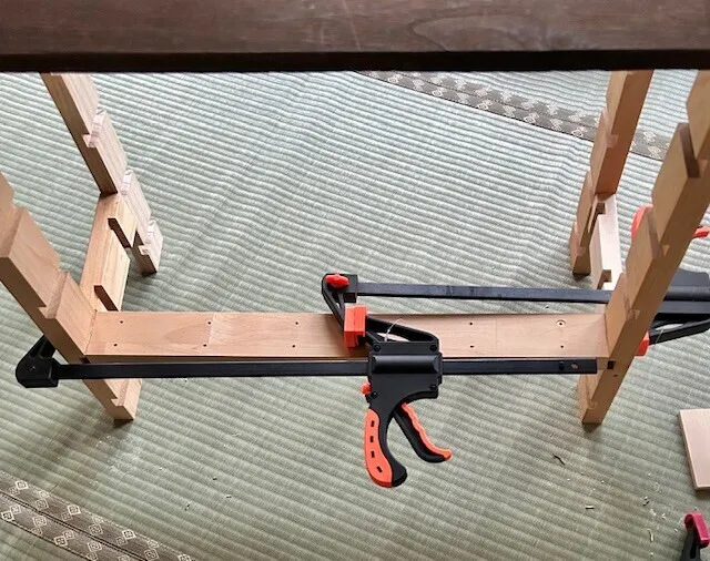 ダブルクランプの延長技も活躍してて、長さのある材にはコレだよねぃ😁👍🗜️🗜️✨
