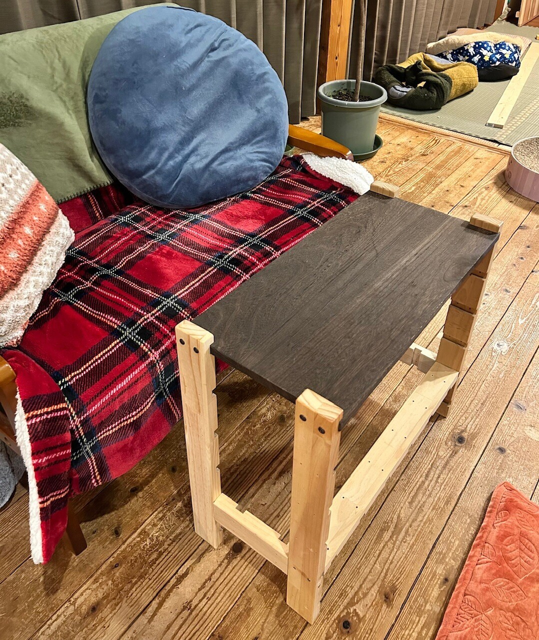 1/25日に父の一年祭(仏事で言うところの一周忌)を予定してて、祭事のあと我が家で昼ごはんを食べることになったんだけど、足の悪い母は座卓で正座がしにくいので、急遽ソファー用のサイドテーブル作ることにしました。