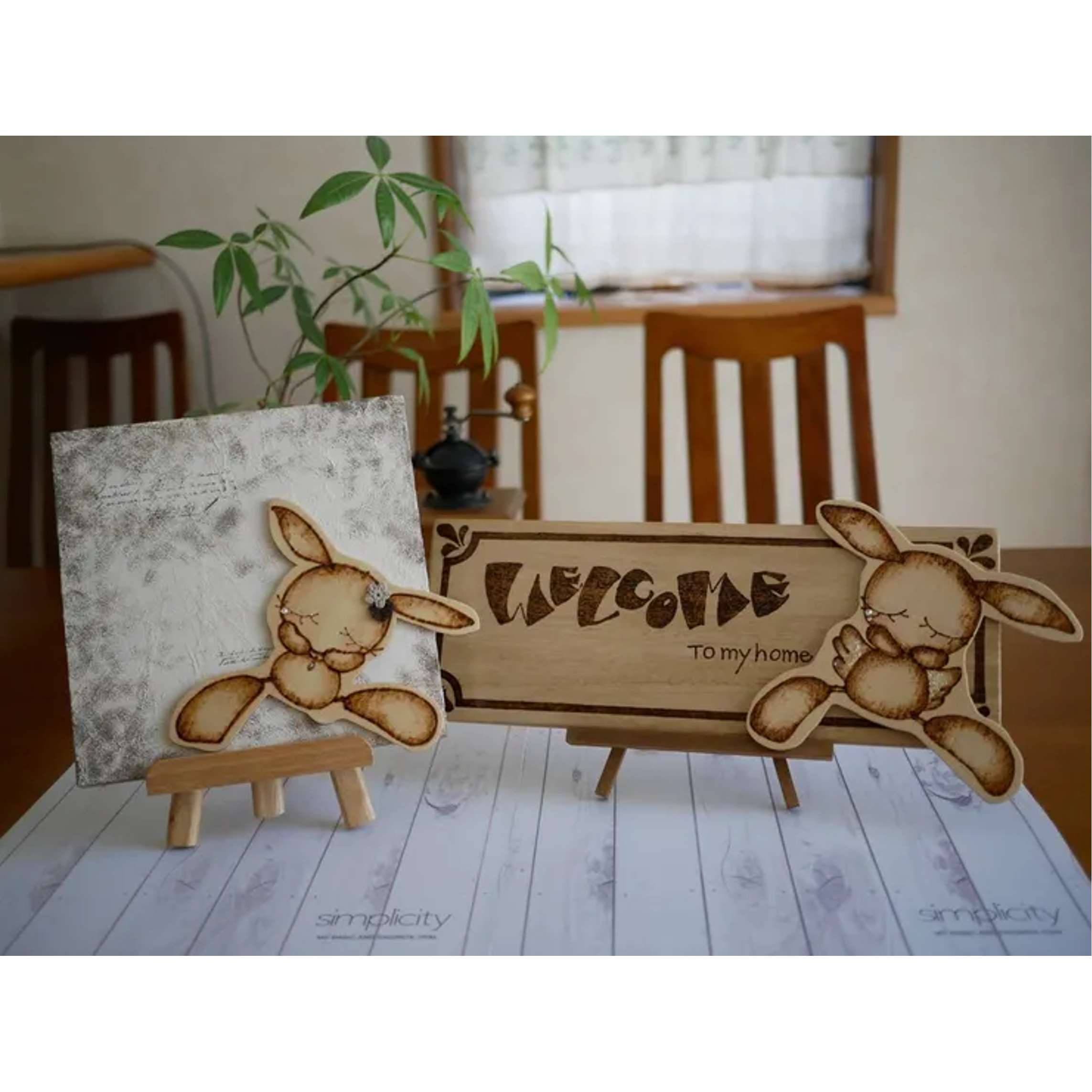 | No.6Welcomeボードと置き鏡 | ウッドバーニングで可愛いディスプレイを作成🐰 |