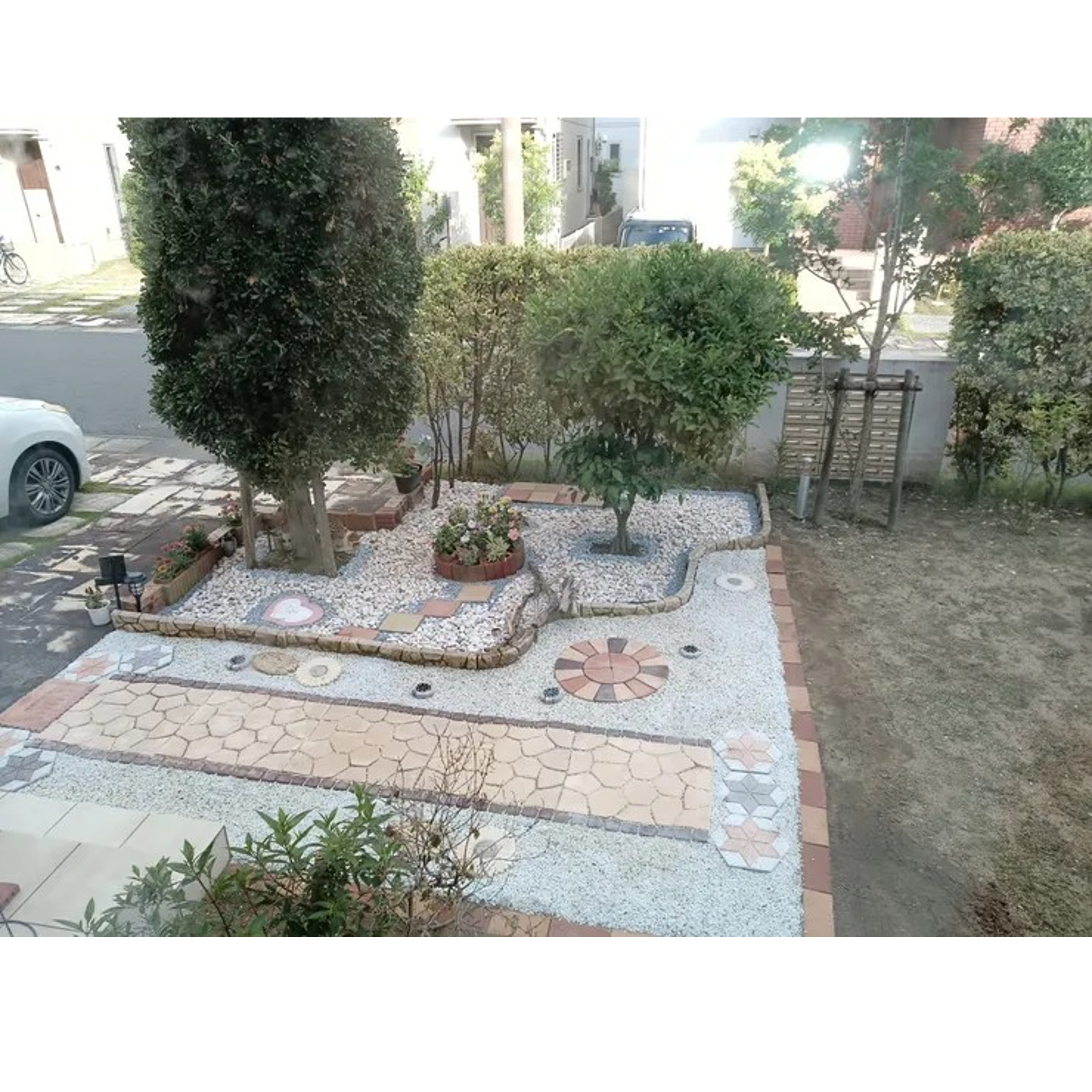 投稿を表示お庭の手入れだけでも大変なのに木や花の位置を考えながらタイルや石を敷き詰めてとっても明るいまた綺麗なお庭になってると思います