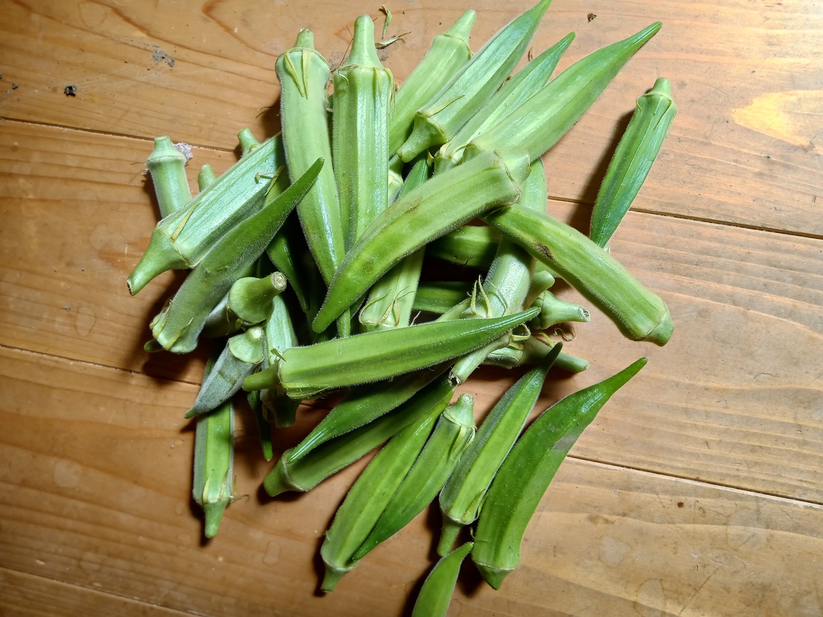 オクラは毎日これくらい。茹でたら減るのでなんとかなるけど、どーすんのこのピーマン。