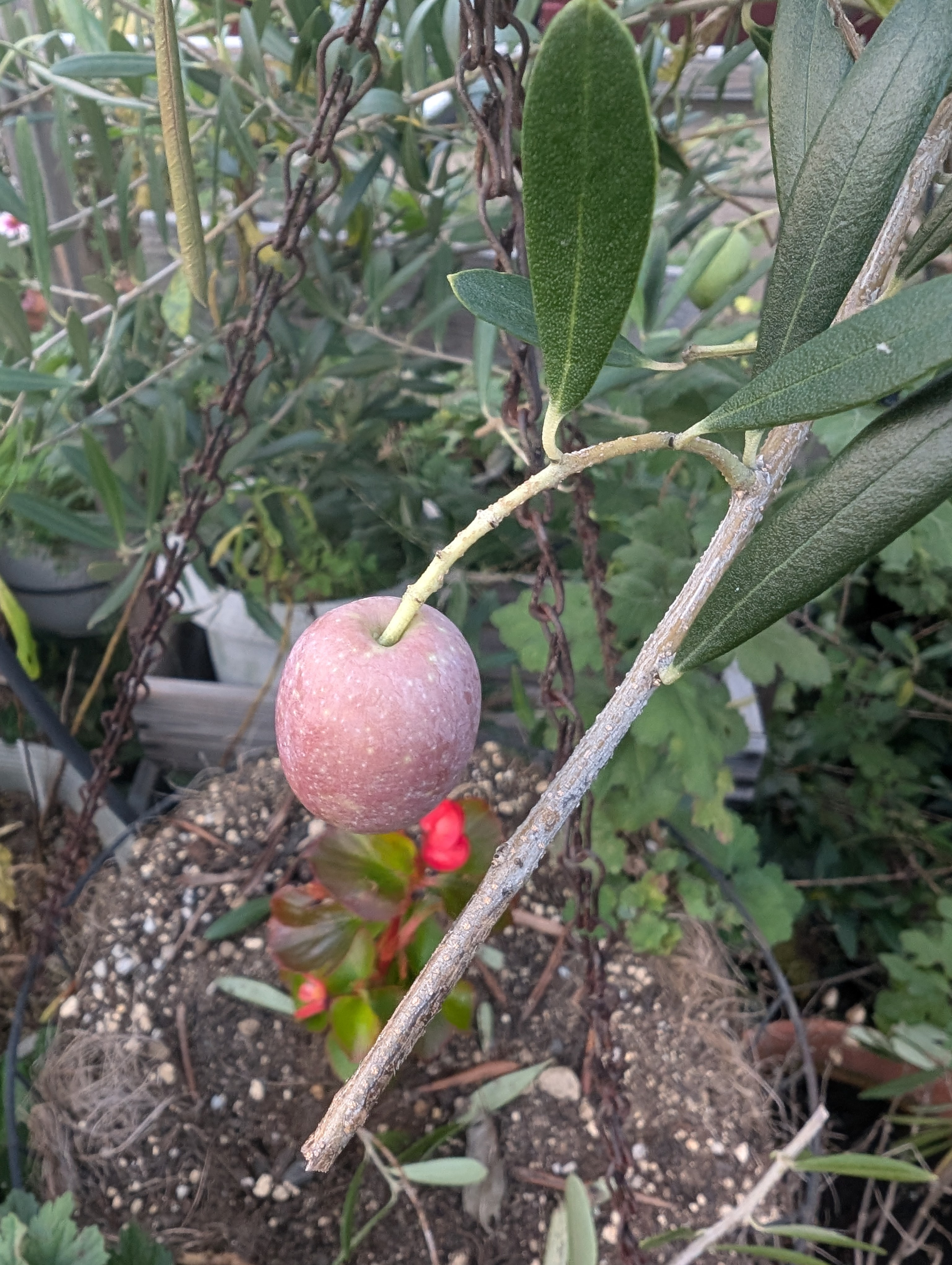 WSで寄せ植えした我が家のオリーブ🫒の実は緑のまま落ちてしまったので残っていたらこんな感じだったのかなぁ。