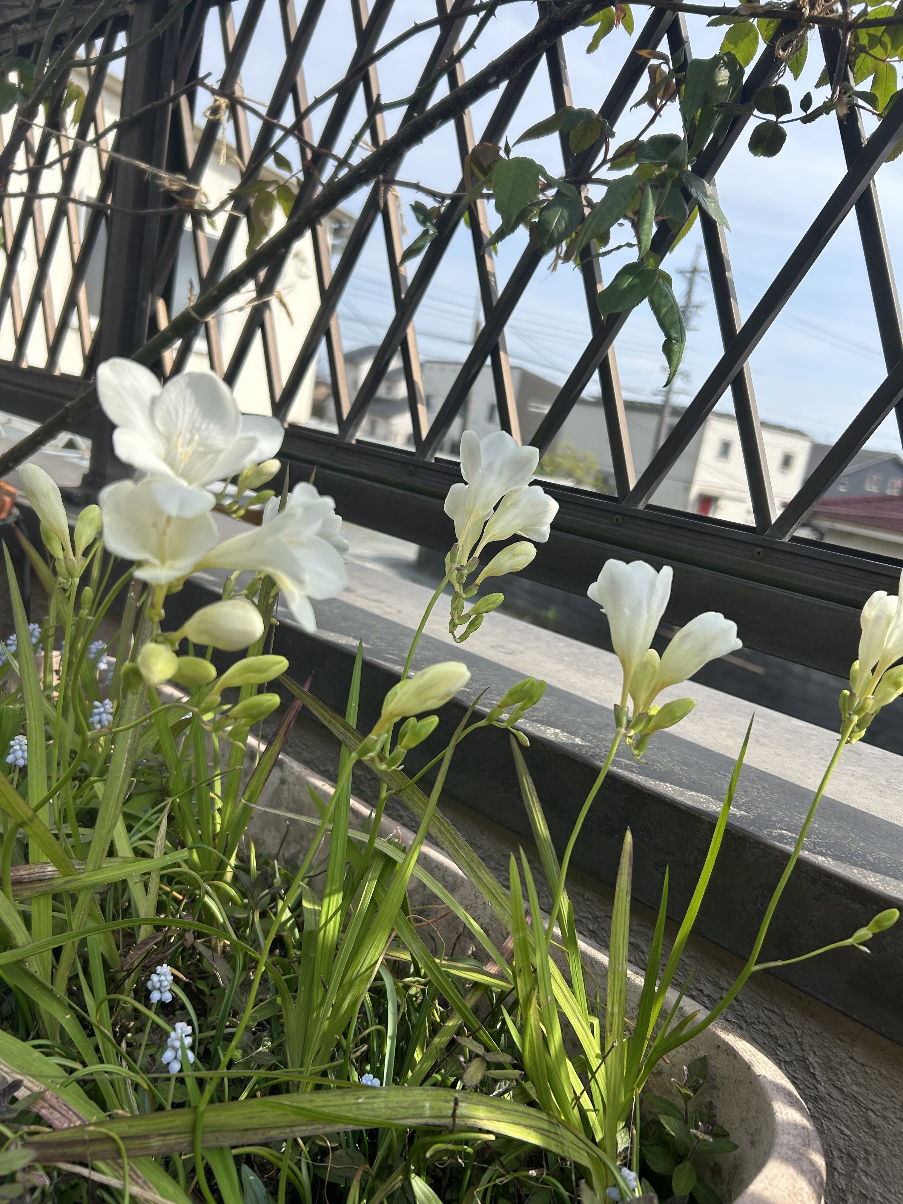 投稿を表示miminさん、おはようございます🌞 フリージア素敵ですね。🤍 株元にひっそり咲いている、水色のムスカリも可愛らしい🩵ですね。(◕ᴗ◕✿)