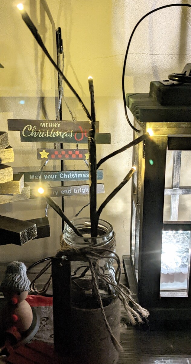 投稿を表示Nohashiさん、おしゃれな雑貨の本に載ってるような素晴らしいディスプレイ❗ツリーもランタンも100円ショップのライトもみんなそれぞれ主役✨