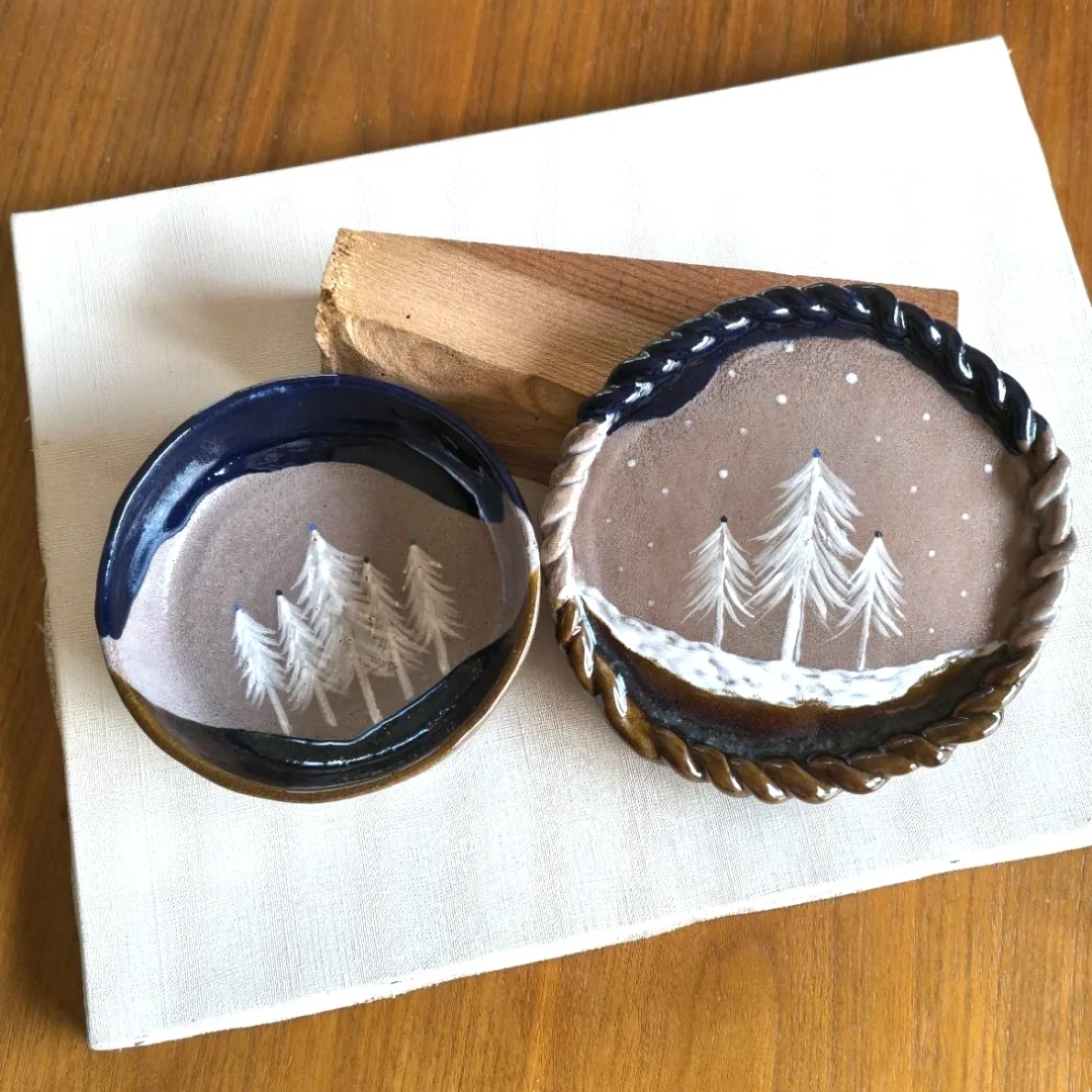 トップ > クリスマスDIY2025 > キャンペーン > 陶のスープボウル&ケーキ皿【聖なる夜~白いモミの木~】 ふたつの虹 2025/12/10 12:10 陶のスープボウル&ケーキ皿【聖なる夜~白いモミの木~】 ■作品内容 陶土で作ったスープボウルとケーキ皿 ■工夫ポイント ①シックで落ち着いた大人カラー ②真っ白なシンプルモミの木ツリー ③ベースはアイスグレー。深蒼紺碧の夜空としっとりとした茶色の大地はそれぞれ瑠璃釉とあめ釉で表現 ④右のケーキ皿には雪が降り積もっています ⑤絵画のように飾っていただくのもオススメ クリスマスデコレーション部門【2025】 クリスマスツリー部門【2025】 ふたつの虹 ケーキ皿 スープボウル 陶芸 クリスマス クリスマスツリー モミの木 雪 いいね 共有する 共有する X LINE リンクをコピー コメントする 5 件の返信 (新着順) ミュートしたユーザーの投稿です。 投稿を表示 ダンボ 2025/12/14 18:09 これは芸術品ですね! とてもすてきです! いいね 返信する ミュートしたユーザーの投稿です。 投稿を表示 ふたつの虹 2025/12/15 07:26 ダンボ お褒めのお言葉、ありがとうございます(^人^) 個人的に気に入っている作品なので、そう言っていただけてとても嬉しいです🥰 いいね 返信する ミュートしたユーザーの投稿です。 投稿を表示 チコリ 2025/12/11 01:42 どちらのお皿も素敵です! 使える芸術品ですね💕 いいね 返信する ミュートしたユーザーの投稿です。 投稿を表示 ふたつの虹 2025/12/12 11:53 チコリ コメントありがとうございます😊 『使える芸術品』だなんて、あわわわわ…💦大変恐縮です。。 でも、お褒めのお言葉、とっても嬉しいです!ありがとうございます! 器はやっぱり『使ってなんぼ!』 陶芸作品は衣食住の食の中で、皆さんにとって身近な存在であって欲しいので、デザイン性もありつつ、実用的な作品をこれからも色々考えながら楽しみながら作陶していきたいと思います😉 いいね 返信する ミュートしたユーザーの投稿です。 投稿を表示 コスモス 2025/12/10 23:29 どこから見ても素敵です😍 いろんな技法があるんですね👍 いいね 返信する ミュートしたユーザーの投稿です。 投稿を表示 ふたつの虹 2025/12/12 07:56 コスモス コメントありがとうございます! よーーーく見ると粗があちこちにあったり、実はちょっと訳あり品だったりもするのですが…😓😰😂 でも、色合いやデザインは個人的にもとても気に入っています!(何の言い訳?!🤣🤣笑) これは『技法』という程のものは1つもなく、器を作って形を仕上げてしばらく乾燥。 1回目の焼成(700度)、素焼きを終えたら、モミの木ツリーを陶芸用の絵具で描き、上から釉薬を掛けます(雪は釉薬で描きました)。 2回目の焼成、本焼き(1230度)をしたら、完成です。 陶芸は1つの作品が仕上がるまで時間が掛かりますが、だからこそ焼き上がりの喜びはひとしおです😆 いいね 返信する ミュートしたユーザーの投稿です。 投稿を表示 ハッピー 2025/12/10 21:11 素敵ですね😻 使うのがもったいないですね いいね 返信する ミュートしたユーザーの投稿です。 投稿を表示 ふたつの虹 2025/12/12 07:19 ハッピー コメントありがとうございます! 『使うのがもったいない』お気持ちよく分かります! 私もプレゼントでいただいたマグカップやハンカチやその他諸々、ずっとそう思って大事にとっています😅 でも、その時いただいたものって『その時の自分に合うもの』を選んで下さっていると思うので、【その時】に使ったり身に着けたり、した方がいいんだろうな、と、ハッピーさんにいただいたコメントを拝見して、思いました。 なので、これからはどんどん使っていこうと思います😆 大切な気付きをありがとうございました! いいね 返信する ミュートしたユーザーの投稿です。 投稿を表示 ミモザ 2025/12/10 20:48 とっても素敵🤩 こんな陶器初めて見ました。飾りた〜い👍 いいね 返信する ミュートしたユーザーの投稿です。 投稿を表示 ふたつの虹 2025/12/12 07:03 ミモザ ありがとうございますー!とっても嬉しいですー! 日本では『飾り皿』というものがあまり浸透していませんが(有田焼き等の高級大皿はありますが)、器やお皿は実用的な食器用としてだけではなく、インテリアの1つとして単体で飾ったり、お気に入りの小物類を置いてディスプレイしたり、そういう使い方も本当にオススメです😊 その場合、シンプルなものより、こういう少しストーリーのあるもの、想像力をかき立ててくれるようなものがいいだろうなぁと思い、冬バージョンとして作りました。 作品はプロフィール欄に記載のサイトでご紹介しているので良かったら覗いてみて下さいねー😉 いいね 返信する