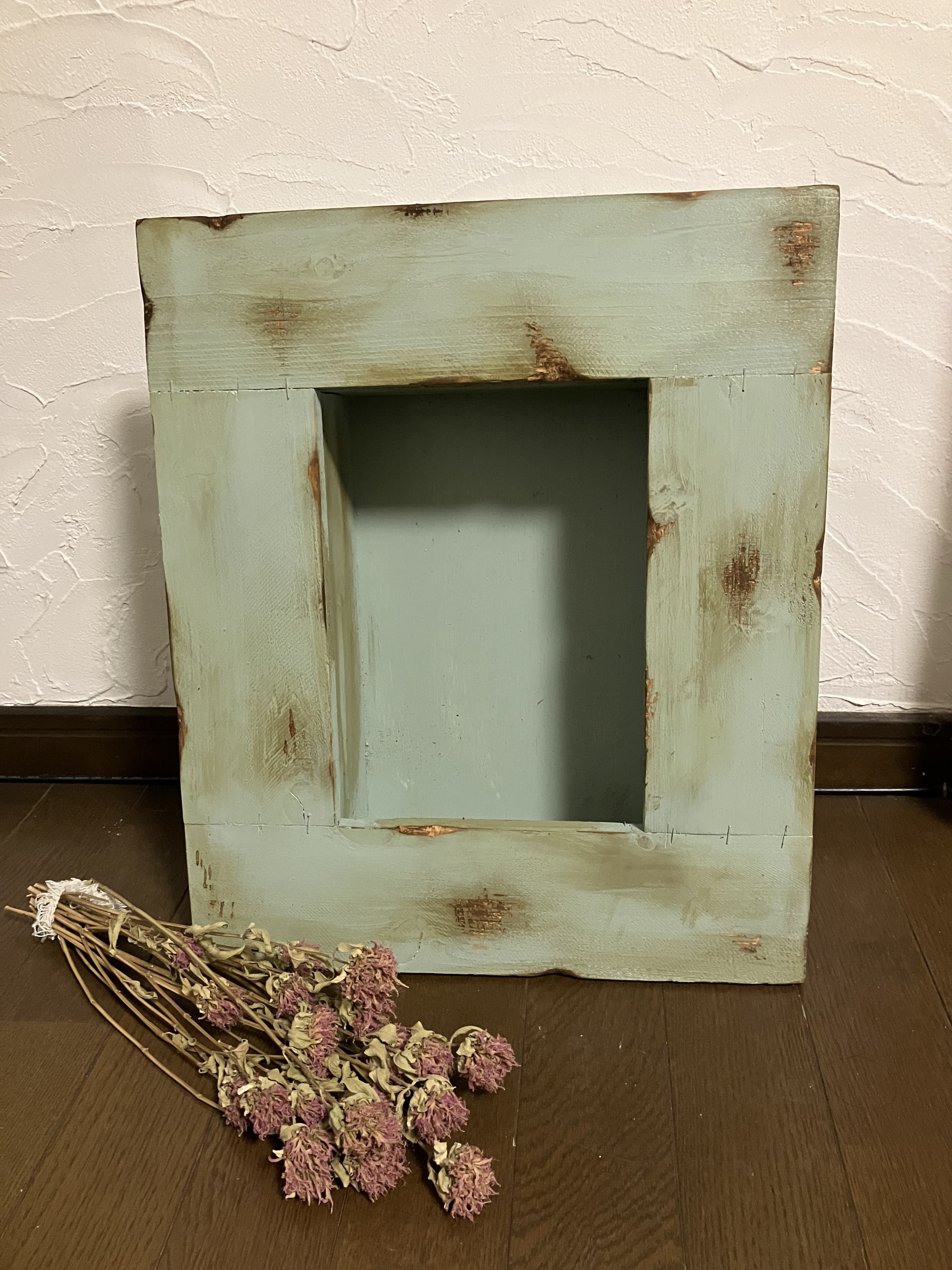 トップ > DIY > エクステリア > フラワーフレーム keichan 2023/02/05 22:26 フラワーフレーム 連日のwsになりました😅。今日は娘に頼まれて作ったフラワーフレーム。ワンポイントのトールペイントを描こうとしたらアンティークにするだけで良いとの希望😅彫刻刀を使い傷つけて最後はワシンの"ポワーステイン"オリーブで汚しました。古そうな雰囲気出てるでしょうか。単なる汚れとも見えますが😂娘は喜んでいたので結果オーライです。再来週はわたしの分を作る予定です。 いいね 共有する 共有する X LINE リンクをコピー コメントする 3 件の返信 (新着順) ミュートしたユーザーの投稿です。 投稿を表示 きょろっち 2023/02/06 07:36 彫刻刀で傷を…。 ダメージ加工が素敵です✨ いいね 返信する ミュートしたユーザーの投稿です。 投稿を表示 keichan 2023/02/06 08:34 きょろっちさん、ありがとうございます。 ただアンティーク風にしようと思ってたのですが、より古そうに見せるため削りました❣️ダメージ与えるのが楽しくなって!雰囲気は出たとは思いますが😅 自分用はペイントしようと思います🥰 いいね 返信する ミュートしたユーザーの投稿です。 投稿を表示 ひまわり 2023/02/06 06:44 keichanさん、アンティーク風とっても素敵ですね💞。来週自分用、どんなのができるか楽しみです。ぜひ投稿待ってま〜す🤗。 いいね 返信する ミュートしたユーザーの投稿です。 投稿を表示 keichan 2023/02/06 06:53 ひまわりさん、ありがとうございます。 昨日は手早いひまわりさんに必死に追いつこうと頑張りましたがやはり間に合わず😅。 夜に急に思い立ちアンティーク風に仕上げました。 自分用はどうしようか悩みますねー😉 いいね 返信する ミュートしたユーザーの投稿です。 投稿を表示 はまたこ 2023/02/05 23:57 サンドグリーンがアンティークな感じになって素敵です!! どんなお花が入るかな〜楽しみですね! いいね 返信する ミュートしたユーザーの投稿です。 投稿を表示 keichan 2023/02/06 06:57 はまたこさん、ありがとうございます。 やり始めたら止まらなくなって😅どんどん汚したり飾ったりしました。😉 娘が嫌だと言ったら自分用にと思ったら🙆OKが出て😅。 こちらはお嫁入りになりました。 いいね 返信する