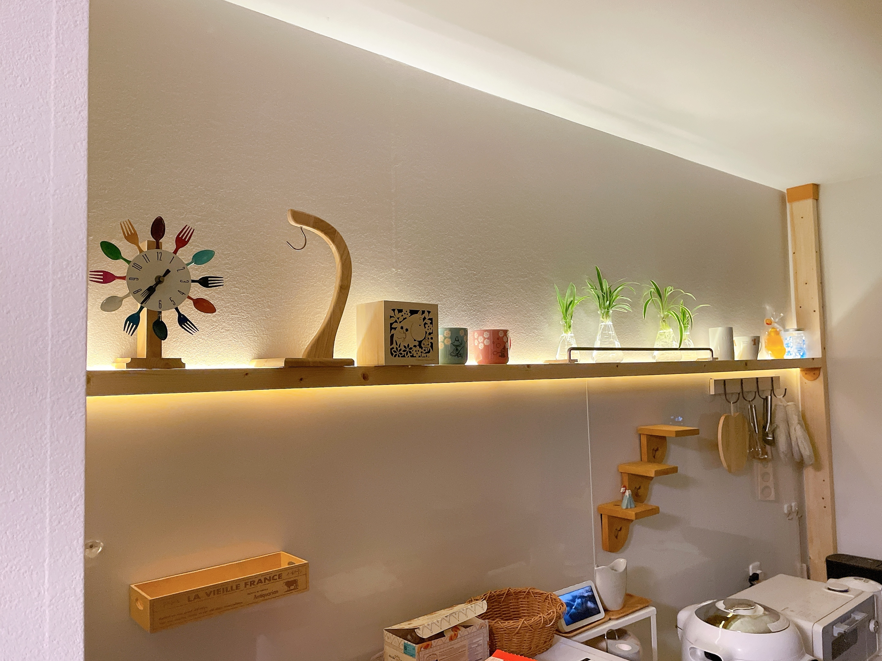 トップ > DIY > インテリア > キッチン後ろの壁に間接照明 マサミホ 2024/10/26 23:38 キッチン後ろの壁に間接照明 キッチン後方の壁に間接照明を付けて見ました。明るさセンサーと人感センサーで人が通ると光る感じにしてみました。2バイ4材なので奥行き広くはないのですがちょっとした物を置ける感じになりました。 我が家は上戸棚をあえて設置してなくてスッキリしたいとの妻でしたが全く無いと少し苦労もある様です。💦 三角フラスコに小さい苗を入れたのを置いてみました。 木材の固定はディアウォールと言う商品で固定してみました。 半額以下で売られて居て即買いしたのですが数ヶ月使わずに眠ってました💦 いいね 共有する 共有する X LINE リンクをコピー コメントする 7 件の返信 (新着順) ミュートしたユーザーの投稿です。 投稿を表示 Grass艹crown 2024/10/27 19:01 テープライトにセンサー接続出来るの知らなかったわぁ😵🙌🎓‼️✨ いちいちスイッチON OFFだと面倒で使わなくなりそうだけど、センサーなら良いなぁ〜😆👍💡👏✨ いいね 返信する ミュートしたユーザーの投稿です。 投稿を表示 マサミホ 2024/10/27 19:03 Grass艹crown そーなんですよねー家の中の物置とかにも便利そうなので追加購入を検討してますぅー いいね 返信する ミュートしたユーザーの投稿です。 投稿を表示 にこ 2024/10/27 15:51 オシャレキッチン憧れます😍 いいね 返信する ミュートしたユーザーの投稿です。 投稿を表示 マサミホ 2024/10/27 18:22 にこ おしゃれだなんて、でも嬉しいですぅ。 いいね 返信する ミュートしたユーザーの投稿です。 投稿を表示 ちーず 2024/10/27 09:46 間接照明でいっぺんにオシャレキッチン🍽️に変身じゃないですか🤩 電気部分もう少し詳しく見たい〜🧐 奥様も大喜びですね💕ステキ✨ いいね 返信する ミュートしたユーザーの投稿です。 投稿を表示 マサミホ 2024/10/27 18:22 ちーず ちーずさーん!コメントありがとうございます😭 テープライトはキッチン裏のパネルの上部に上向きに設置してます。 センサーは入り口付近に設置してます いいね 返信する ミュートしたユーザーの投稿です。 投稿を表示 ちーず 2024/10/28 06:16 マサミホ おぉ〜😳✨ 分かりやすいお写真をありがとうございます😆 いいね 返信する ミュートしたユーザーの投稿です。 投稿を表示 ぱんだ 2024/10/27 08:59 間接照明って凄くオシャレな空間に変わりますね〜。 ネット通販とかで売ってるの見るけど、ホテルみたいに早変わり画像を見て買おうか考えてたんです。 気分も変わって……素敵〜😍 いいね 返信する ミュートしたユーザーの投稿です。 投稿を表示 マサミホ 2024/10/27 17:27 ぱんだ こんにちはーコメントありがとうございます😊 カインズで買ったわけではないのですが。。。 Yショッピングで購入しました♪ 購入写真を載せておきますね。 いいね 返信する ミュートしたユーザーの投稿です。 投稿を表示 Lulu 2024/10/27 07:13 間接照明お洒落ですね😆💕✨ 人感センサーというところもよいですね🤗 いいね 返信する ミュートしたユーザーの投稿です。 投稿を表示 マサミホ 2024/10/27 08:22 Lulu 奥さんも良いね👍って言ってくれましたが本当は両サイドの柱が僕的には気に入って無いんですが。。。 ま、人感センサーの反応も今の所は優秀なので様子見とします。 いいね 返信する ミュートしたユーザーの投稿です。 投稿を表示 ダンボ 2024/10/27 01:09 すてきです! いいね 返信する ミュートしたユーザーの投稿です。 投稿を表示 マサミホ 2024/10/27 08:20 ダンボ ありがとうございます。 全長で約3mの長い棚になるので重量物は置けませんね。 いいね 返信する ミュートしたユーザーの投稿です。 投稿を表示 らんらん 2024/10/27 00:51 とっても素敵です!✨ 照明はまさか電気工事からとか⁇⁇ いいね 返信する ミュートしたユーザーの投稿です。 投稿を表示 マサミホ 2024/10/27 08:18 らんらん おはようございます😃 LEDチューブライトにセンサーをつけただけですので 照明の設置はセルフで行えます。費用的には2,000円ちょっとですね。木材の方が高くついちゃいましたね。笑 いいね 返信する ミュートしたユーザーの投稿です。 投稿を表示 らんらん 2024/10/27 11:08 マサミホ 私たちのように資格がなくてもできるDIYですね! それにしても、間接にするセンスも素敵です✨ いいね 返信する