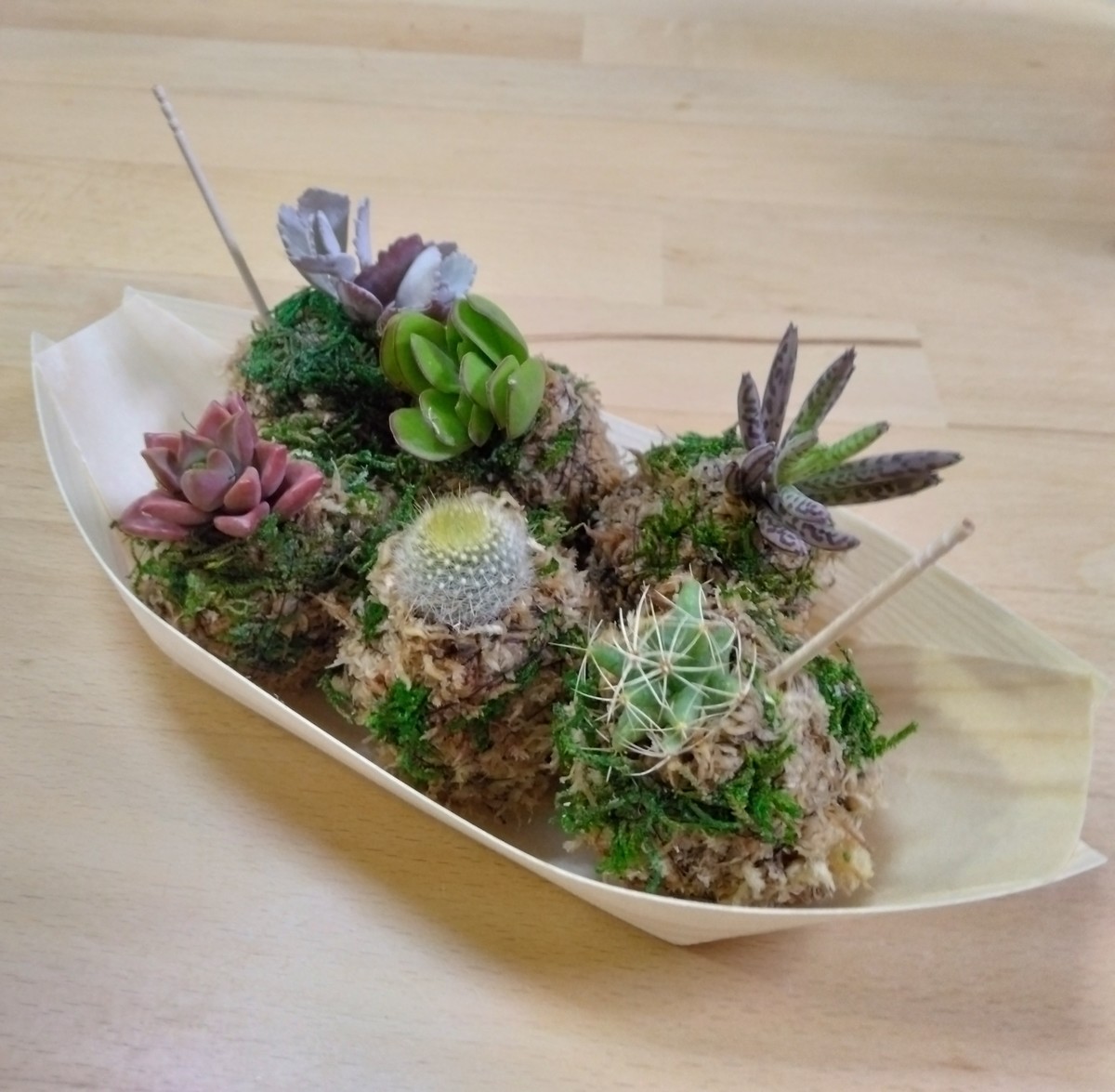 多肉4つ、サボテン2つのミニ苔玉を黙々と作る。