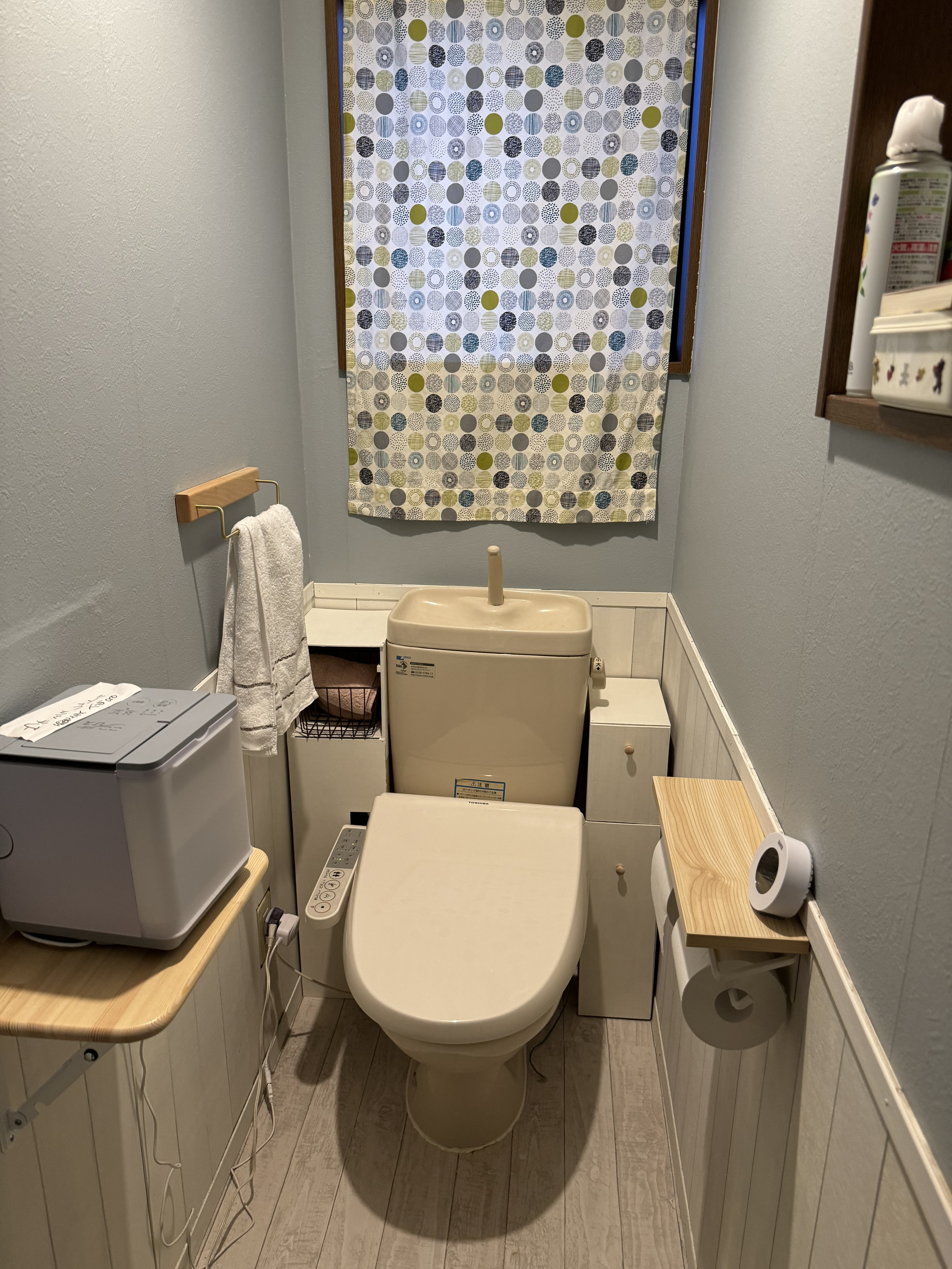 トップ > DIY > インテリア > トイレのリフォーム acco 2024/09/23 21:33 トイレのリフォーム トイレの壁紙、腰板、床材を貼り、タンク横にホースの目隠しと掃除道具と小物入れを作りました。 腰板はベニヤ板をホームセンターで10cmに切ってもらい、ペンキで色を塗りました。 腰板は順調に貼れましたが、見切り板や巾木の釘が上手く打てなくて苦労しました。 いいね 共有する 共有する X LINE リンクをコピー コメントする 0 件の返信 (新着順)