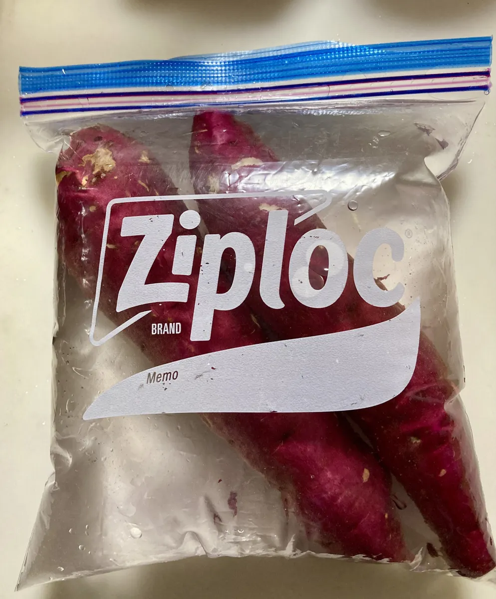 さつまいもが入るボールがなかったのでジップロックを使用。