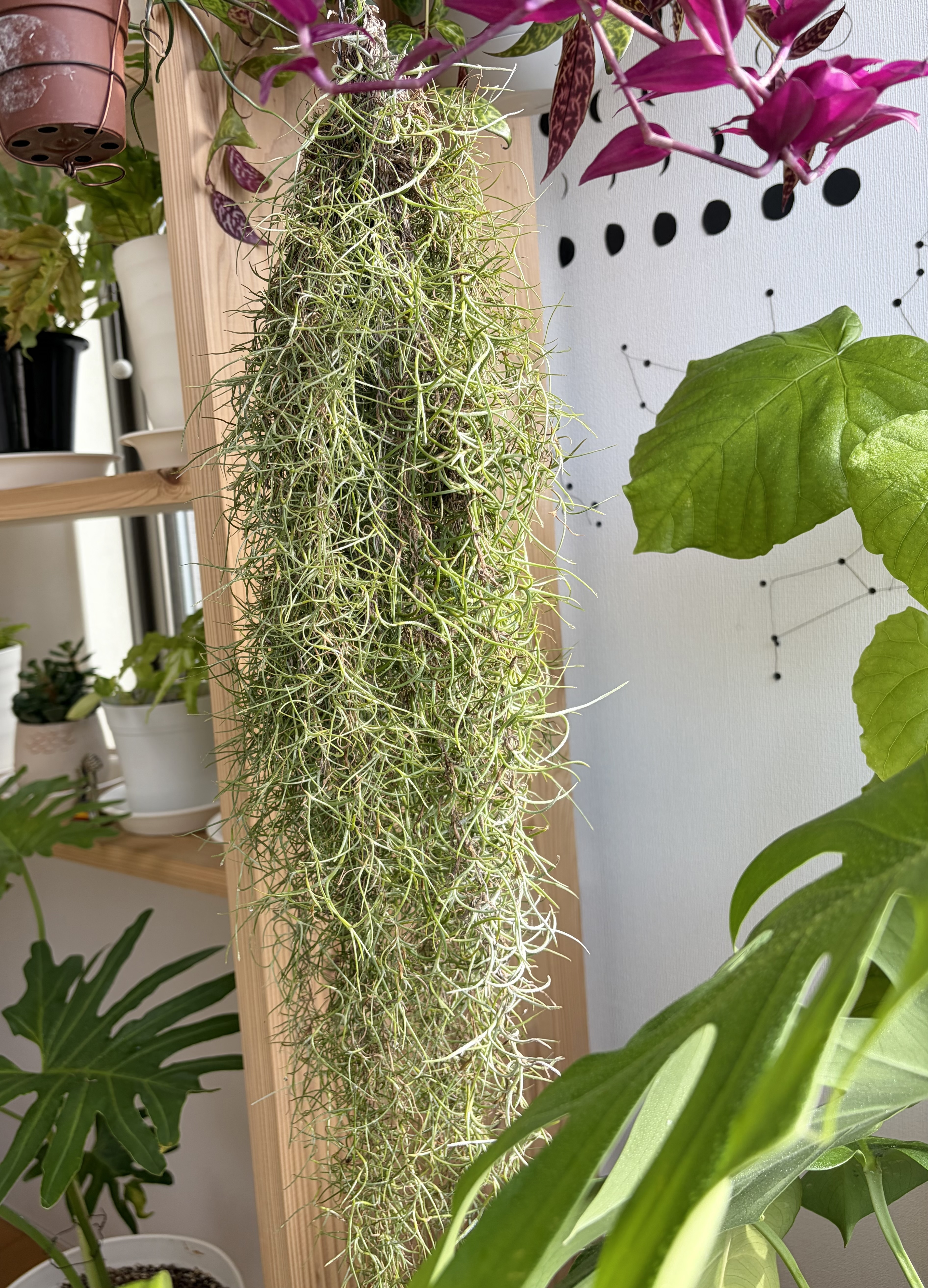トップ > グリーン > 観葉植物 > ウスネオイデスで加湿器いらず? ぽんちゃん 2025/12/13 07:20 ウスネオイデスで加湿器いらず? ■作品内容 ワイヤーで天井から吊るしています ■工夫ポイント 朝と夜に霧吹きで葉水をしているせいか、夜は部屋の中が乾燥せず助かっております😁他の植物のお陰でもあるかもですが😆 朝日を浴びたウスネオイデス。キラキラと輝き、朝の支度をしないといけないけれど、なかなか離れたくない、そんなひと時です☺️ ちなみにウスネオイデスの下にも植物があるため葉水をしても床がほぼ濡れないようになっています👍 おうちグリーンを楽しもう 冬も楽しめる植物 いいね 共有する 共有する X LINE リンクをコピー コメントする 5 件の返信 (新着順) ミュートしたユーザーの投稿です。 投稿を表示 DIY野良猫 2025/12/14 05:18 ネスネオイデス あさひを浴びてキラキラ☆ サンキャッチャーですね😽 いいね 返信する ミュートしたユーザーの投稿です。 投稿を表示 ぽんちゃん 2025/12/13 18:31 Sachicyaro マリーモミ 我が家には加湿器が無く、ほぼ植物と夜の洗濯物でまかなってる感じです😅 少し茶色くなり始めたら1時間ほど水につけておくと元気になります! いいね 返信する ミュートしたユーザーの投稿です。 投稿を表示 マリーモミ 2025/12/13 17:58 天井から吊るしてるんですね👏👏 モリモリでキレイ✨ ウチのは茶色の部分が多くて春頃にキレイにして少し持ち直した感じです。 いいね 返信する ミュートしたユーザーの投稿です。 投稿を表示 Sachicyaro 2025/12/13 16:00 加湿器要らず❓なんて素晴らしい!乾燥しまくってますから😅 そしてグリーンで、癒され!最高ですね〜 いいね 返信する ミュートしたユーザーの投稿です。 投稿を表示 あにー 2025/12/13 09:32 わぁ~~ 立派👏👏 いいね 返信する ミュートしたユーザーの投稿です。 投稿を表示 ぽんちゃん 2025/12/13 13:15 あにー ありがとうございます! 道の駅で500円で売られていた子で、夏に木の木陰で育てていたら、みるみると育ち、ここまで大きくなりました! いいね 返信する ミュートしたユーザーの投稿です。 投稿を表示 あにー 2025/12/13 14:37 え~~っ お買い得💗💗 いいね 返信する ミュートしたユーザーの投稿です。 投稿を表示 ぽんちゃん 2025/12/13 18:28 あにー 見つけた時には絶叫しました😆 即買いでした😆 いいね 返信する