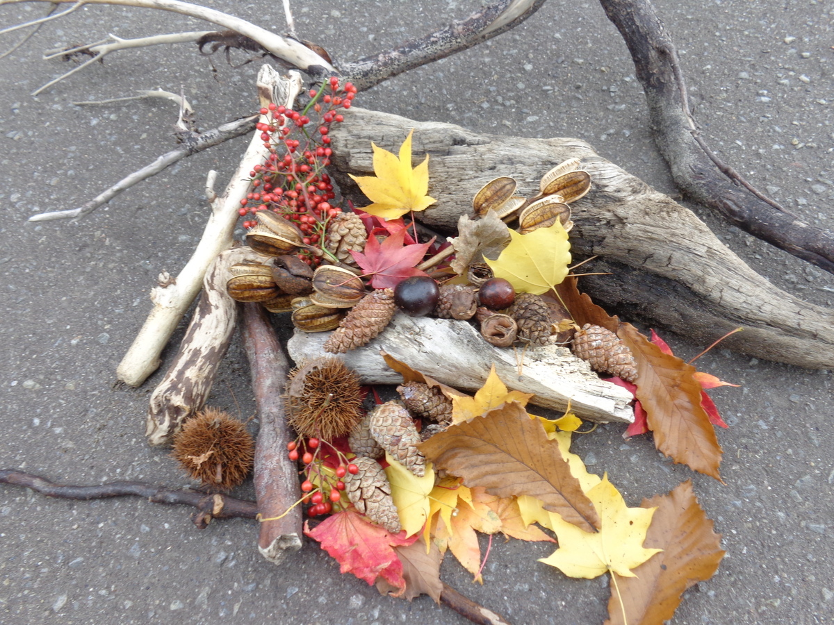なんかいいものあるかなぁ~?どんぐりとか松ぽっくりとかたくさん拾ってきましたよ。