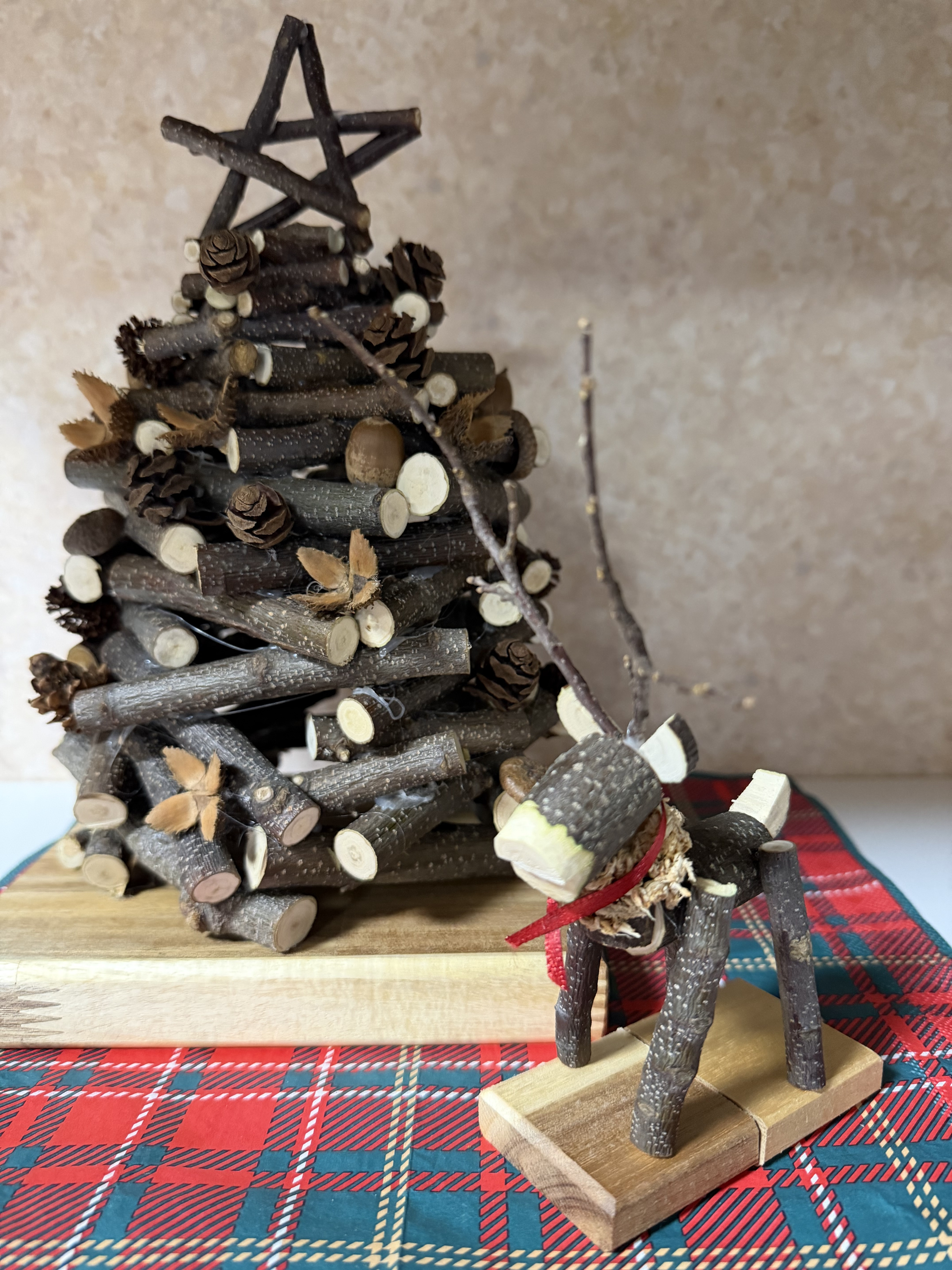 小枝からこのようなステキなツリーやトナカイが出来るんですね👍🤩