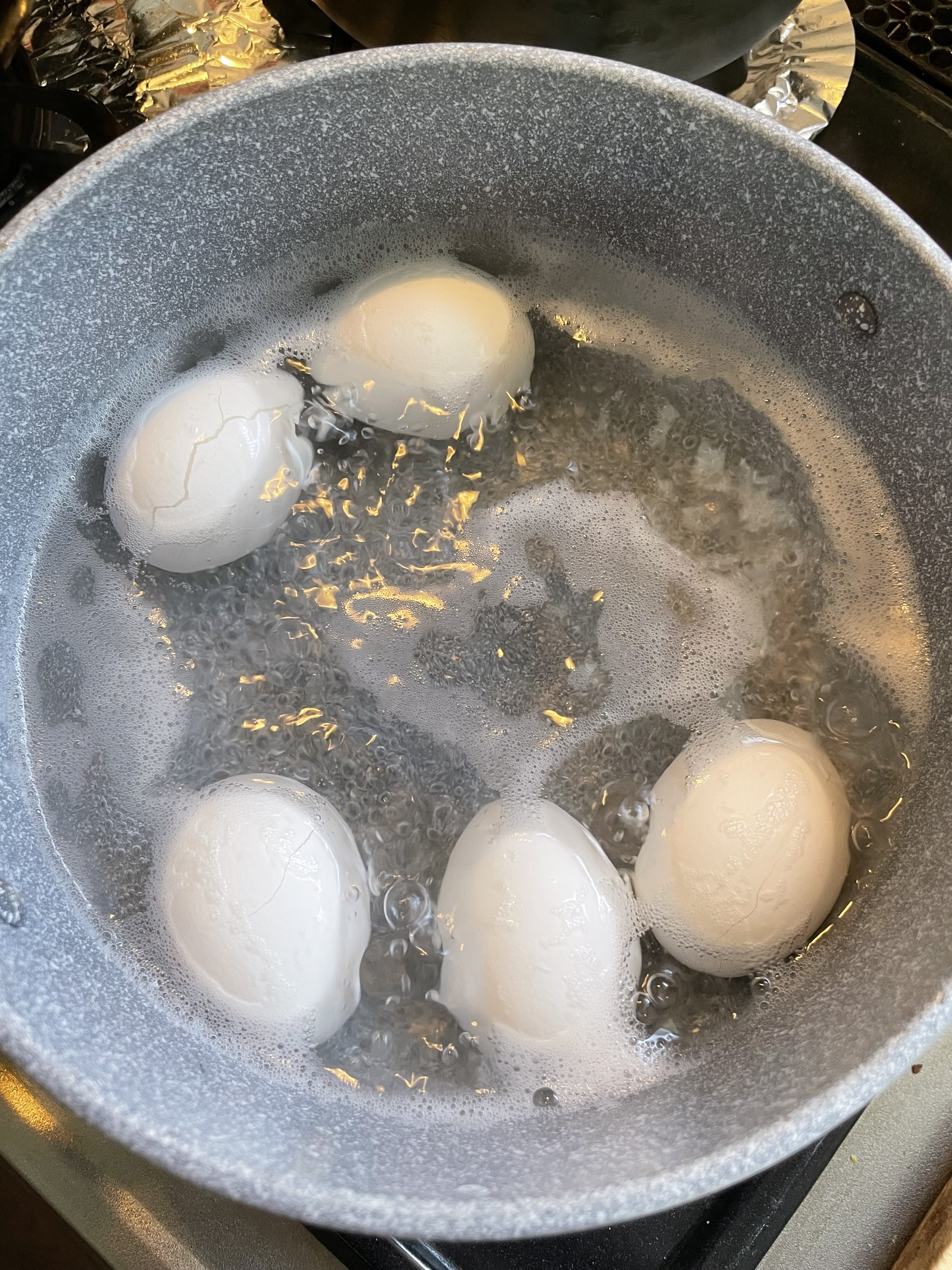 学生時代、サークルの後輩の家に行くと「ボエルドエッグ食べます?」って良く言ってたのを思い出して、ここ数年の試行錯誤で、この工程に落ち着きました。↓
