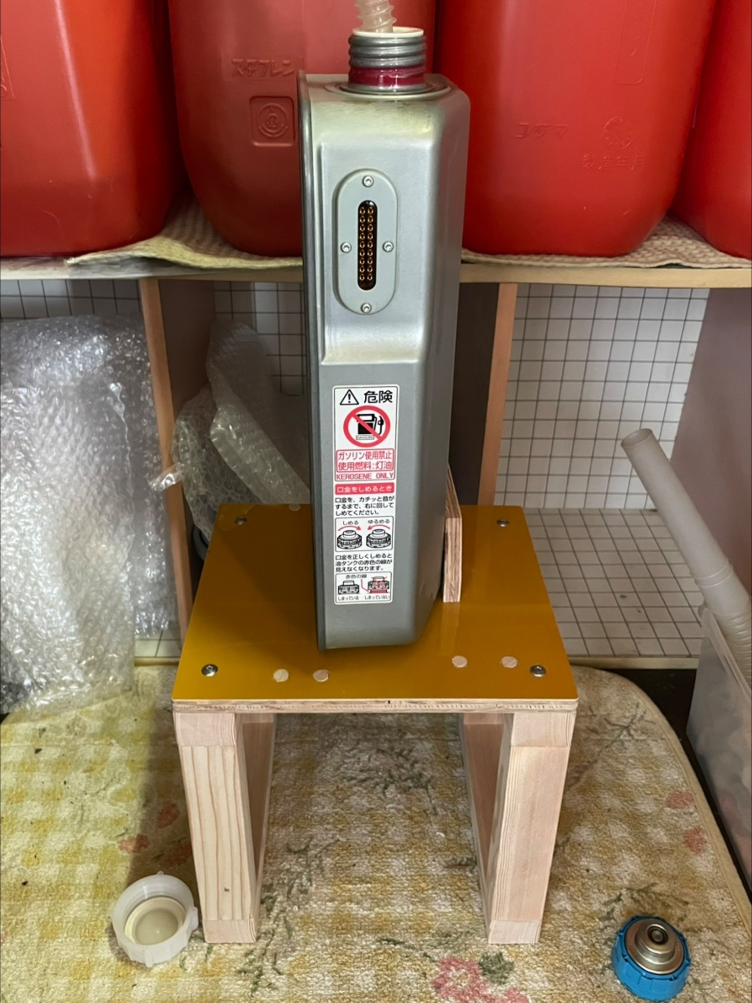 2年前にやっつけで作ってたタンク置き台(リンク→ https://diy-square.cainz.com/announcements/9eikt67hr8dezczj )、当時は手持ちの少ない端材を組んで作ったモノでしたが、よりどっしり安定感のある方が良いと思ってリメイクしました。