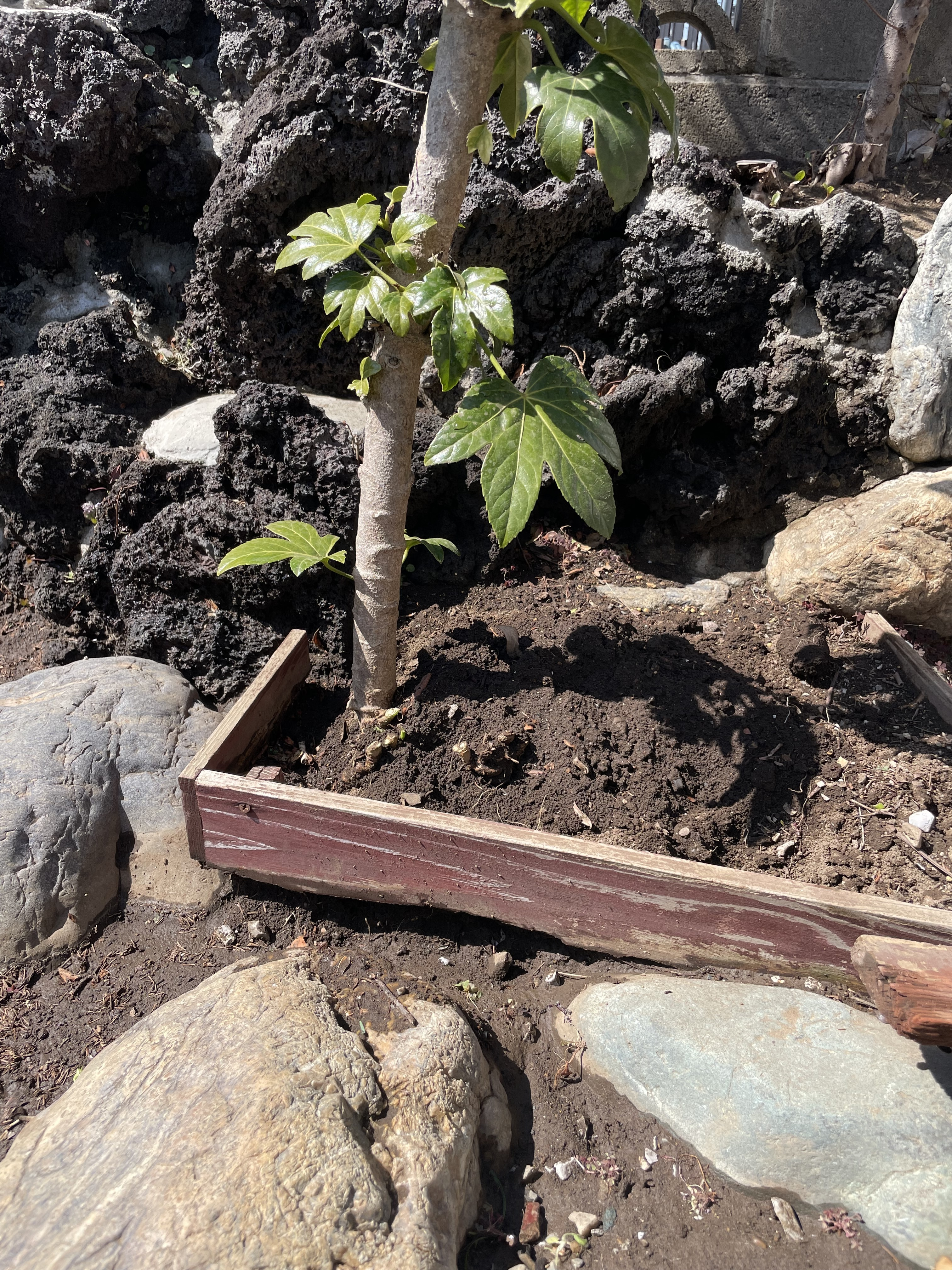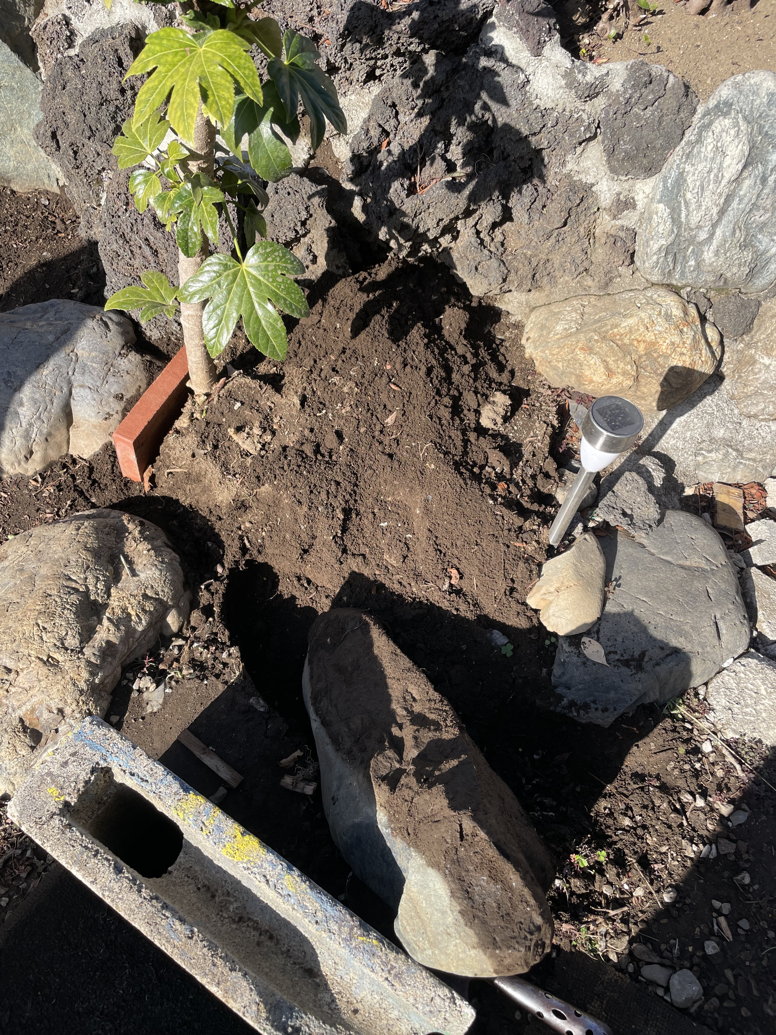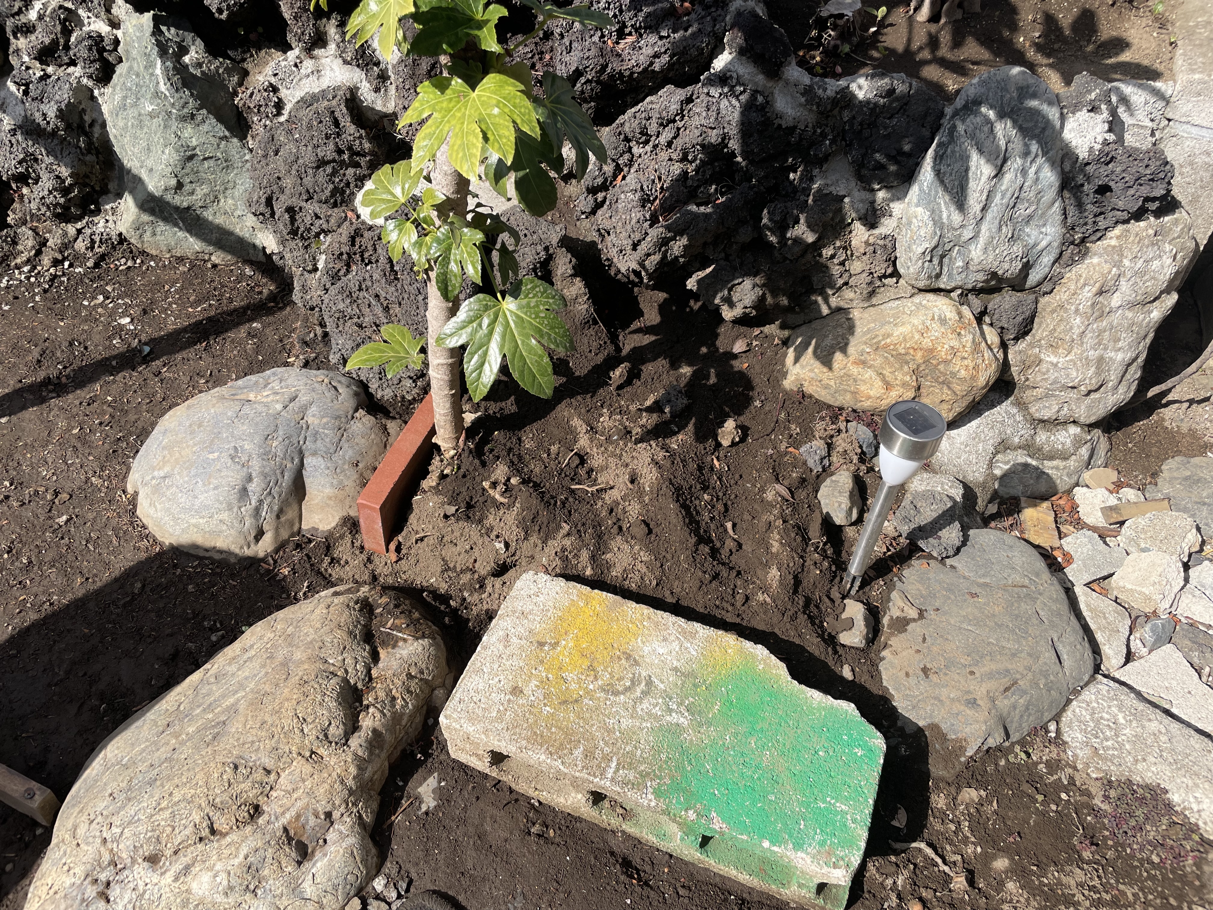 ↓仕切り材の前に埋めてた庭石を掘り起こしました。