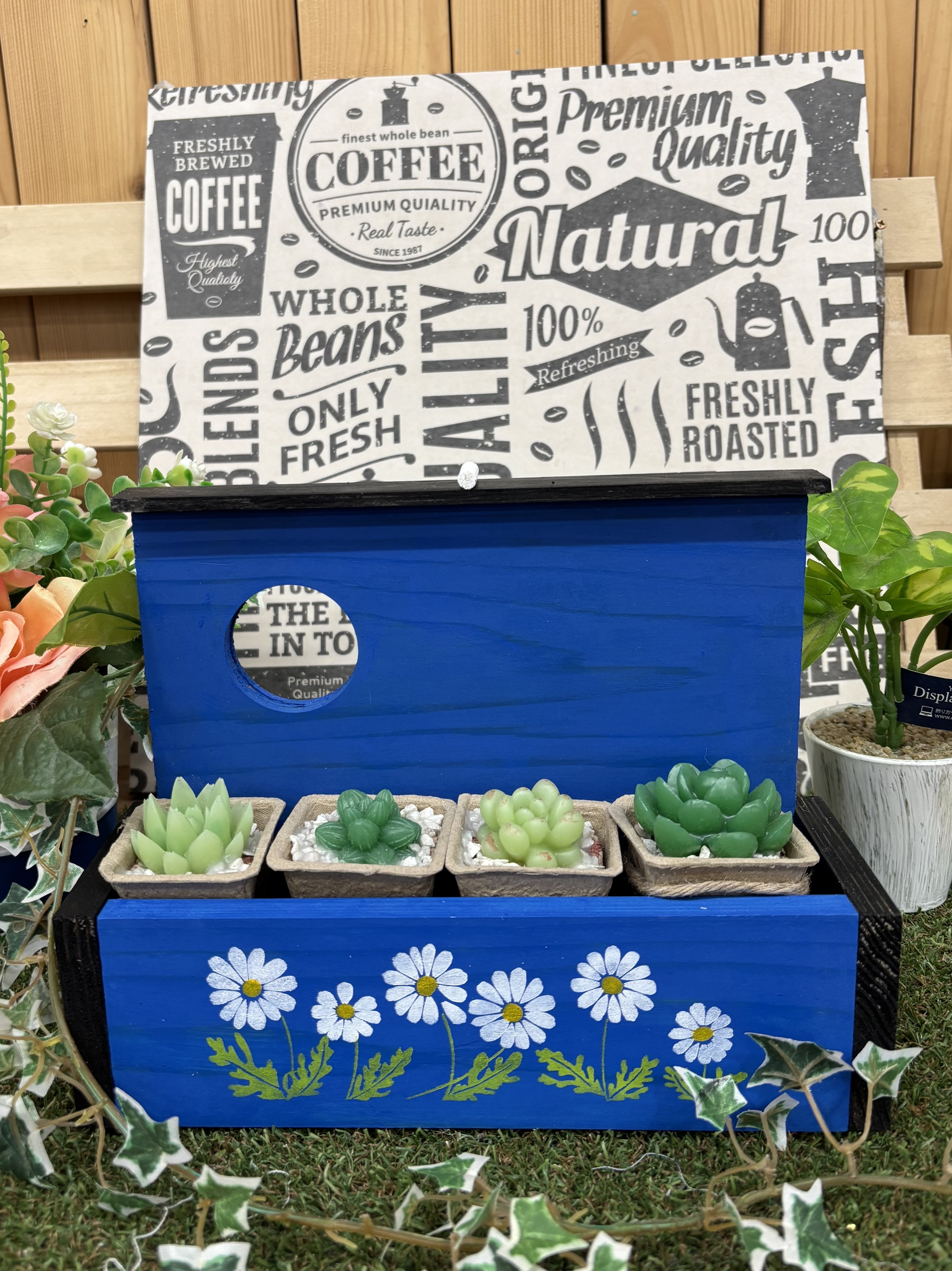 トップ > ワークショップ > 小物・雑貨 > アデリアレトロなミニプランター まるた 2026/02/14 21:32 アデリアレトロなミニプランター マイストアで今年、初めてのWSで アデリアレトロなミニプランターを 作成してきました。 ◾️色の選定の理由 友達が昨年、自作で建てたログハウス🏠の 色に合わせ、シンプルに色を決めました。 ○背板、前板はブルー ○横板、屋根はブラック ◾️ストアでの撮影 左の店舗見本と撮影致しました。 いいね 共有する 共有する X LINE リンクをコピー コメントする 8 件の返信 (新着順) ミュートしたユーザーの投稿です。 投稿を表示 Sachicyaro 2026/02/15 21:23 青が、映えますね🥰 いいね 返信する ミュートしたユーザーの投稿です。 投稿を表示 ゆりさん 2026/02/15 14:53 かわいい色使いステキ💙 いいね 返信する ミュートしたユーザーの投稿です。 投稿を表示 まるた 2026/02/15 18:17 ゆりさん コメント ありがとうございます😊 いいね 返信する ミュートしたユーザーの投稿です。 投稿を表示 とも 2026/02/15 13:41 キレイなブルーですね! いいね 返信する ミュートしたユーザーの投稿です。 投稿を表示 まるた 2026/02/15 18:17 とも コメント ありがとうございます😊 いいね 返信する ミュートしたユーザーの投稿です。 投稿を表示 まろん 2026/02/15 09:51 まるたさん❤️ お久しぶりです😄 ご一緒してから全く会わなかったですね 元気にされてて良かったです😄 また一緒になるの楽しみ😊にしてます🎶 綺麗なブルーです❤️素敵💓 いいね 返信する ミュートしたユーザーの投稿です。 投稿を表示 まるた 2026/02/15 11:01 まろん コメント ありがとうございます😊 昨年末、スタッドレスタイヤ🛞を 入れ替えの際、ギックリ腰に成り 約40日仕事休んでました。 脚に痺れが有り、スキーに行け無いのが 辛いです。 人気のWSは中々、予約が取れ無くて参加が出来てません😢 又一緒に成るのを楽しみに してます。 いいね 返信する ミュートしたユーザーの投稿です。 投稿を表示 りお 2026/02/15 00:18 濃いブルー ログハウスとコラボ いい感じです いいね 返信する ミュートしたユーザーの投稿です。 投稿を表示 まるた 2026/02/15 09:21 りお コメント ありがとうございます😊 当初はログハウス本体の 色にと思いましたが、 ステンシルの色との事を 考え現物のブルーにしました。 いいね 返信する ミュートしたユーザーの投稿です。 投稿を表示 りお 2026/02/15 09:51 まるた 鮮やかでいいコントラストだと思います いいね 返信する ミュートしたユーザーの投稿です。 投稿を表示 まっさん 2026/02/14 23:32 ステキな鮮やかブルー💙ですね 爽やかで、多肉も引き立ってますね。💗 いいね 返信する ミュートしたユーザーの投稿です。 投稿を表示 まるた 2026/02/15 09:14 まっさん コメント ありがとうございます😊 薄いブルー🔵にして良かったです。 いいね 返信する ミュートしたユーザーの投稿です。 投稿を表示 mi 2026/02/14 21:42 また感じの違うデザインですね👍 シンプルで素敵です✨ いいね 返信する ミュートしたユーザーの投稿です。 投稿を表示 まるた 2026/02/14 21:56 mi コメント ありがとうございます😊 ログハウスのブルーは 濃いめなので、あえてシンプルな ブルーに致しました。 いいね 返信する ミュートしたユーザーの投稿です。 投稿を表示 くままん 2026/02/14 21:40 自作のログハウスにびっくりです😳このプランターが飾ってあったら、最初からあったみたいに自然に馴染みそうで素敵ですね💕 いいね 返信する ミュートしたユーザーの投稿です。 投稿を表示 まるた 2026/02/14 21:53 くままん コメント ありがとうございます😊 大きさ、六畳のログのキットを 購入し、ログハウスを 3棟以上建てられた方の指導の元に 五人掛かりで基礎から完成迄、半年以上掛かり建てました。 いいね 返信する