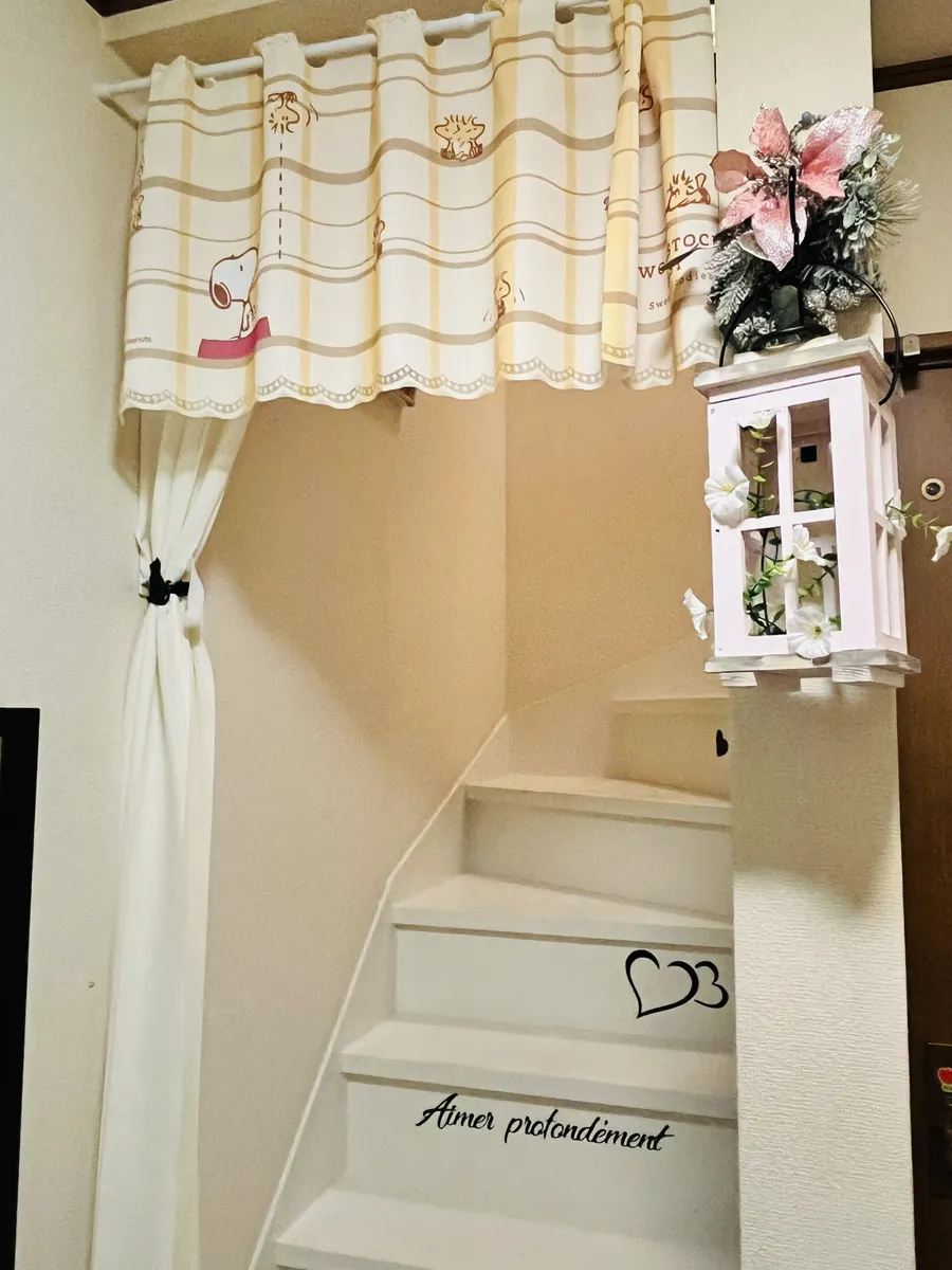 白い階段はステキなステンシル付?