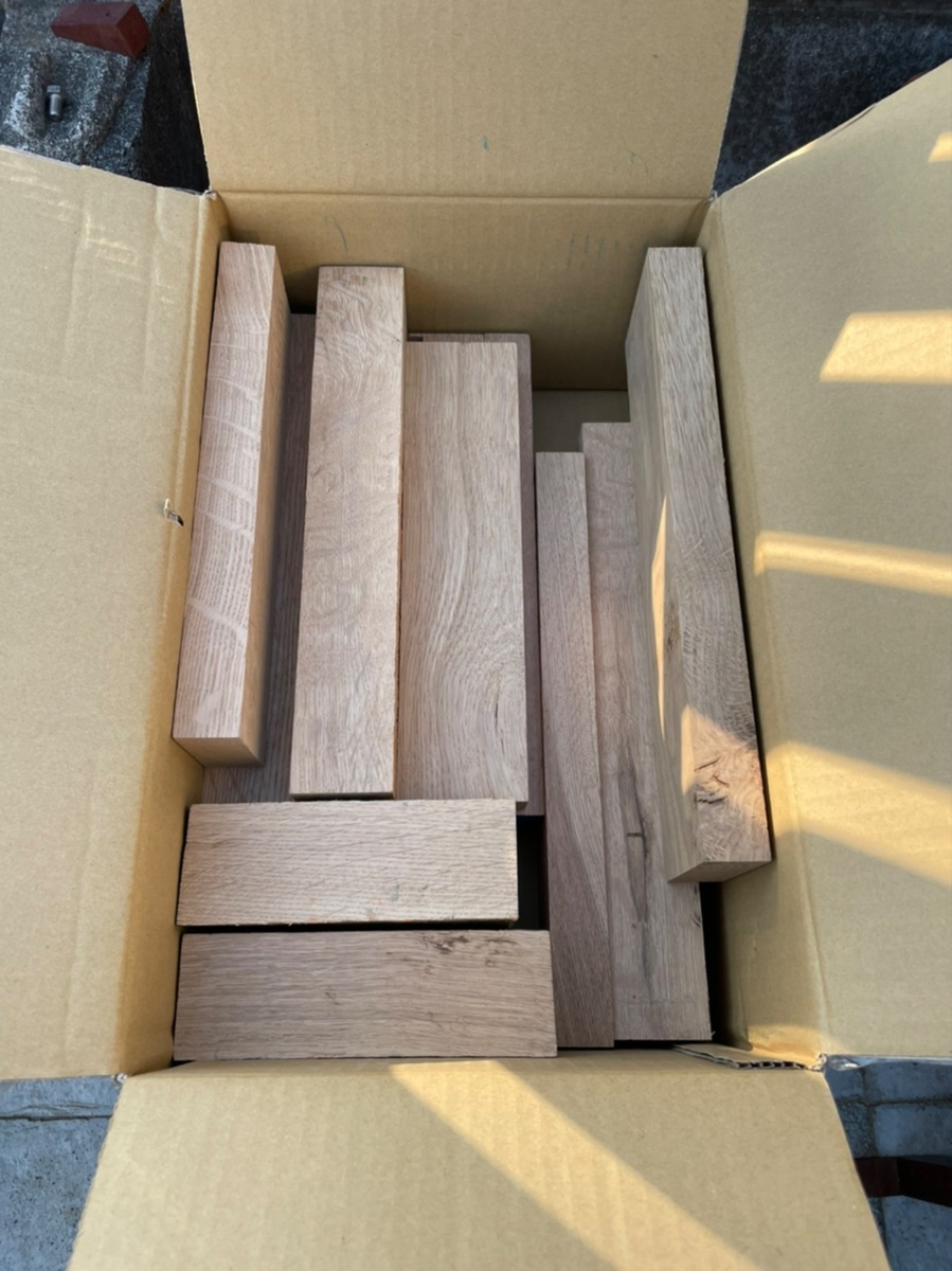 今年1月に購入してたホワイトオークの端材詰め合わせ。具体的に作品が作れる環境が整ってきて、何点か計画中です。
