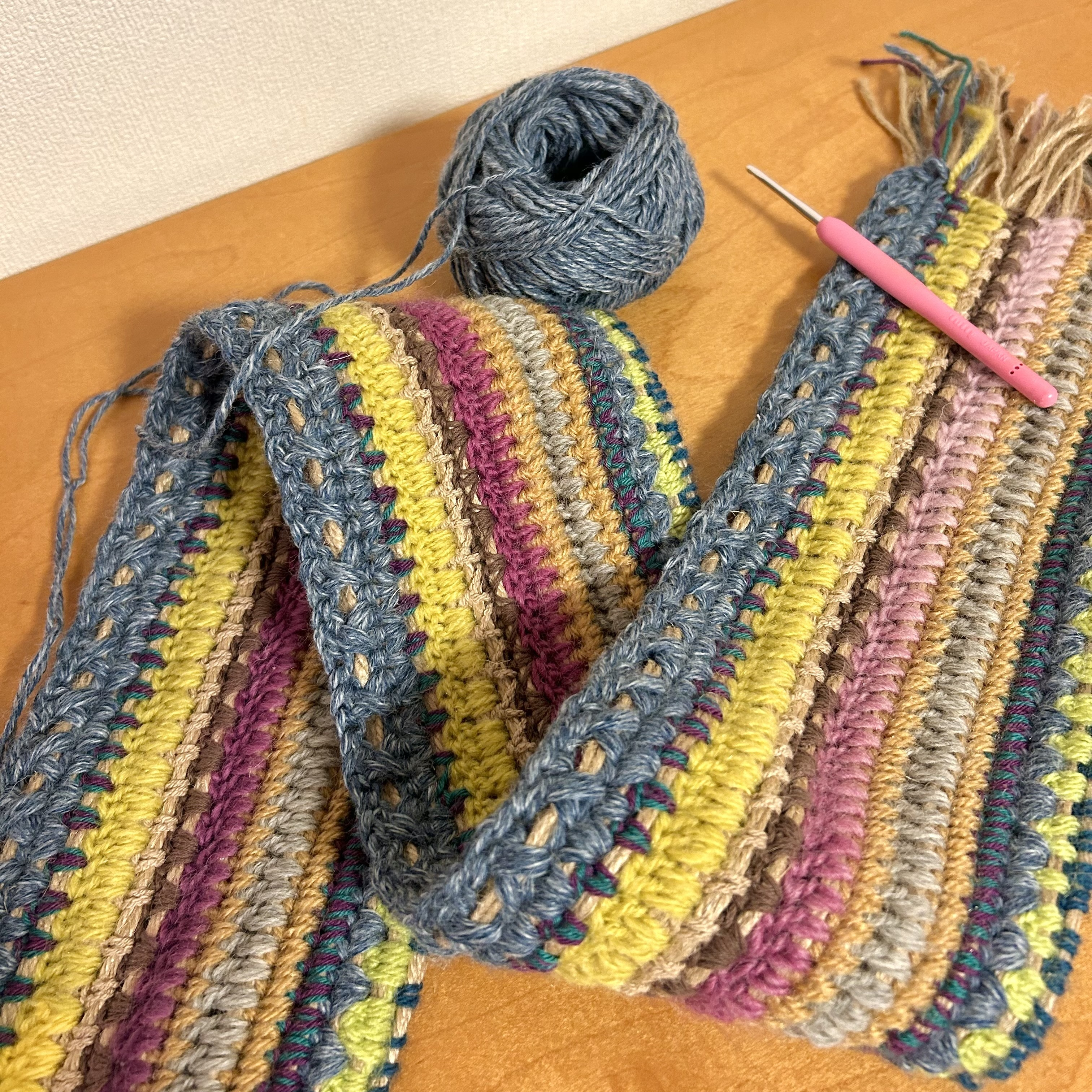 素敵な配色😍に編み方も凝っていて完成が楽しみです😊🩷