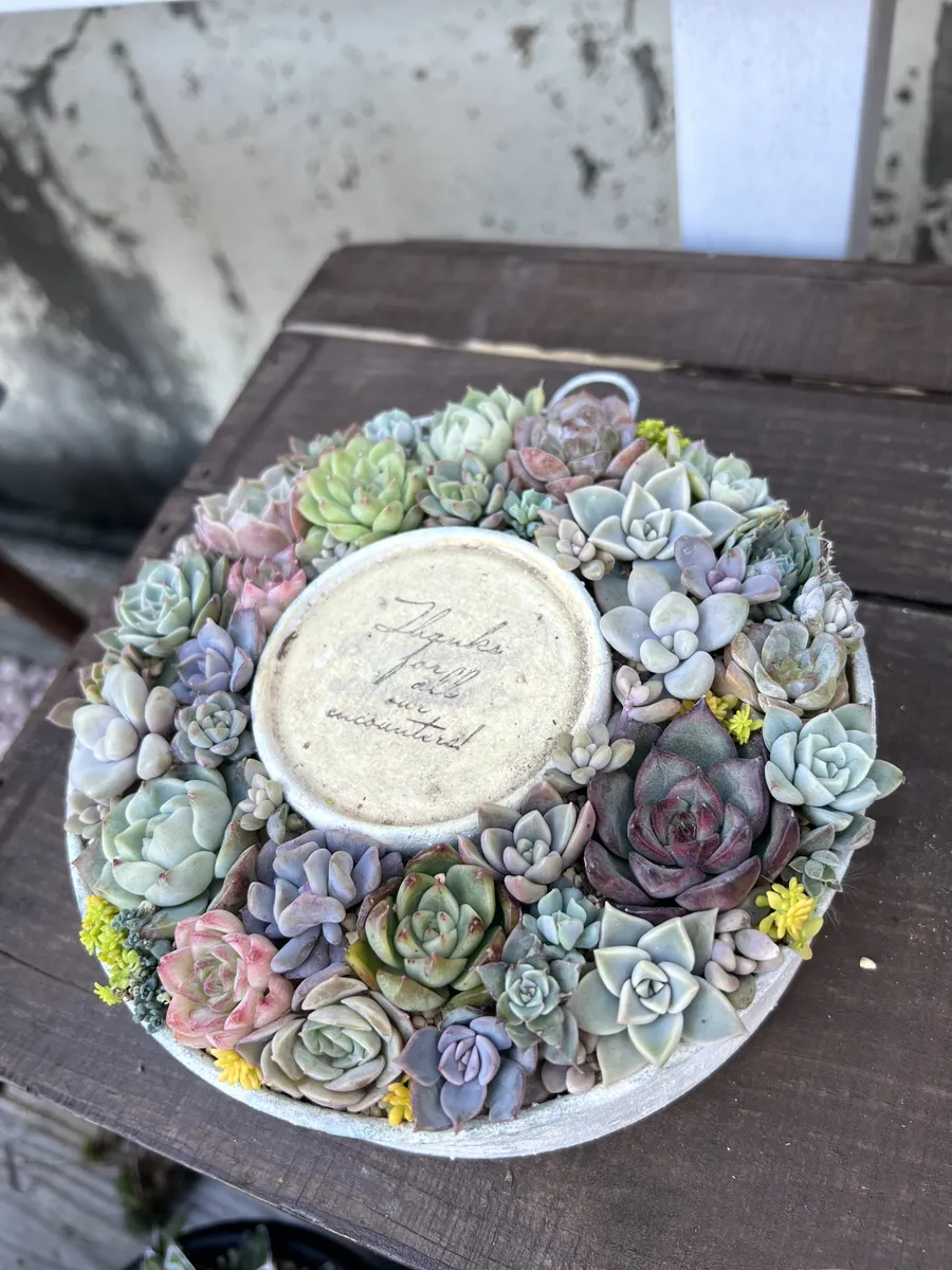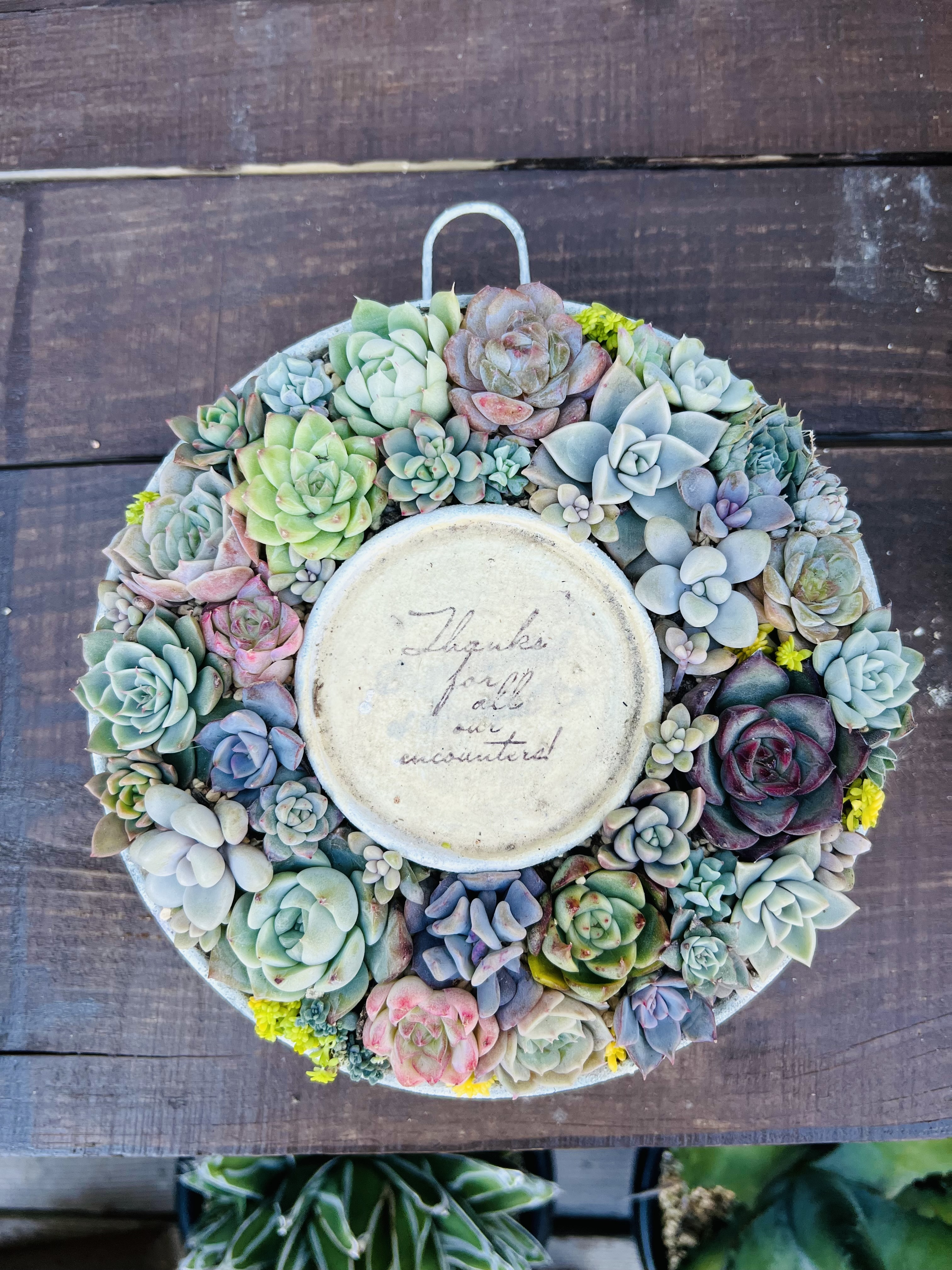投稿を表示大きさや色が様々な可愛い多肉さんが敷き詰められた素敵なリース✨