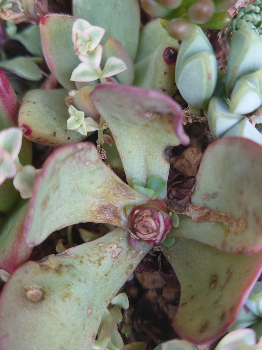 今日、庭パトしていたら🐰さびうさ🐰さんと同じような症状の子が1苗いたので天然のお薬散布して隔離して様子を見てみたいと思います。火祭りもなんか怪しくなっていたので、(重症ぽい)こちらは切り戻して綺麗なところだけ挿し芽しました。