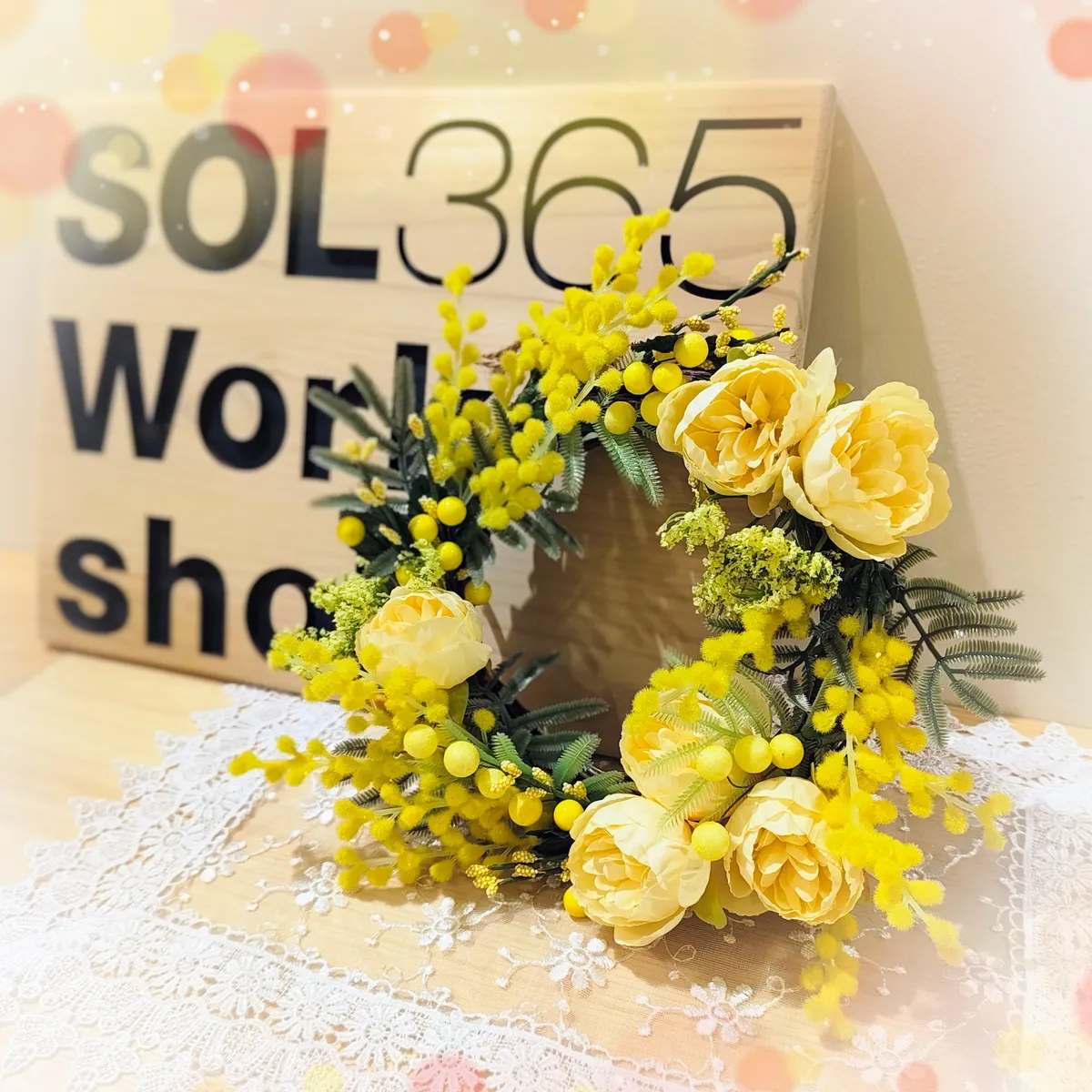 投稿を表示ミモザのリース黄色が鮮やかで素敵ですね😊🎶