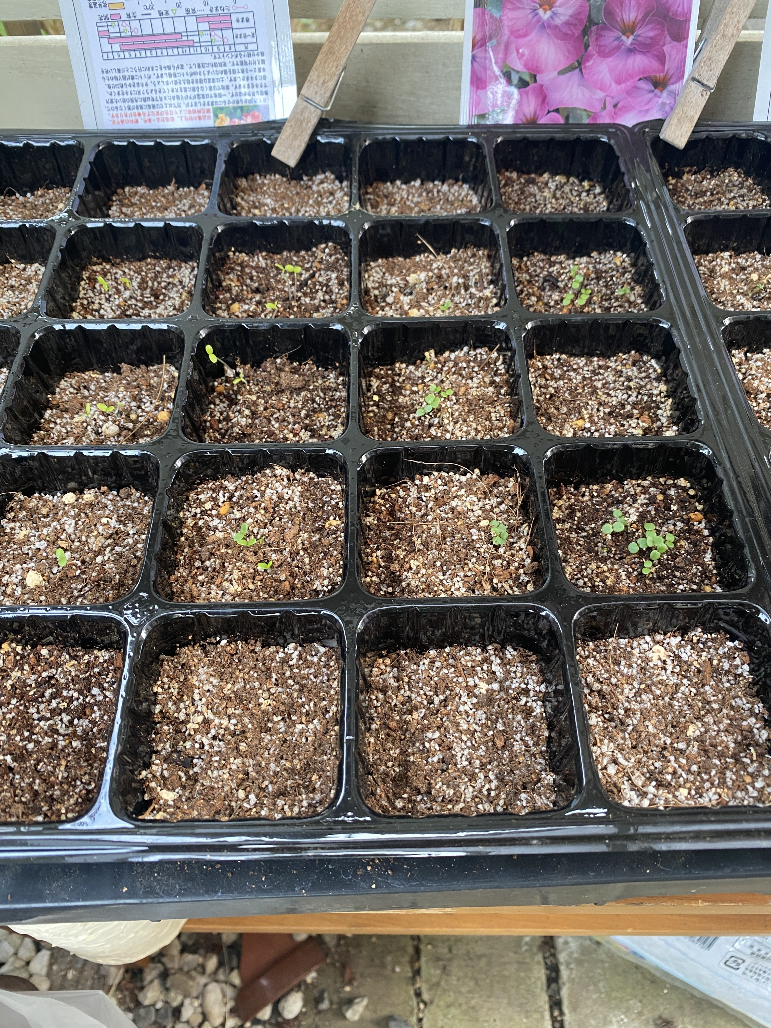 投稿を表示我が家もちょうど同じくらいに発芽しました🤭私は初めての挑戦で、『こんなにちっちゃな🌱から花までいけるんかいな🥺』と、超不安気に見守っております😅