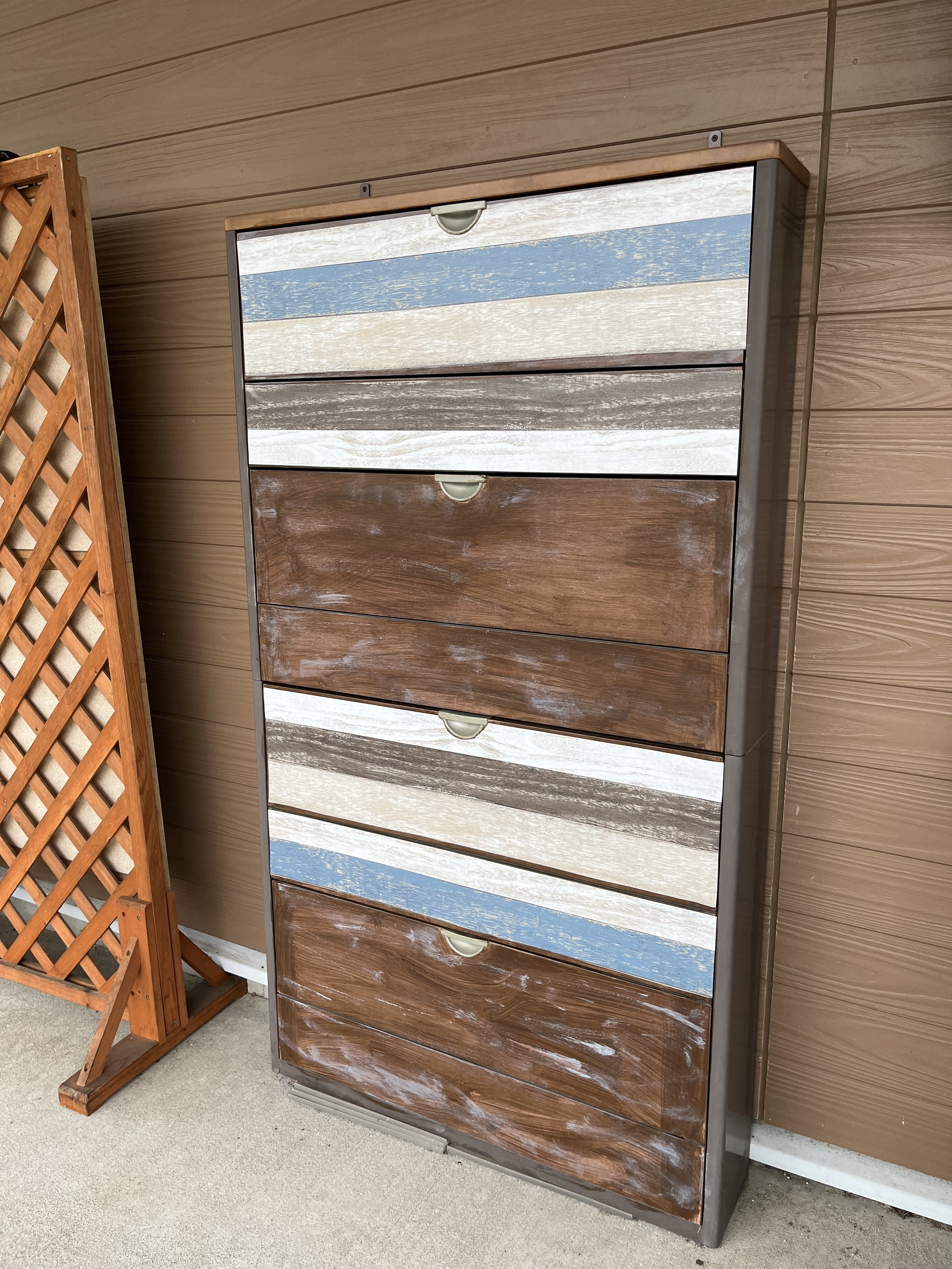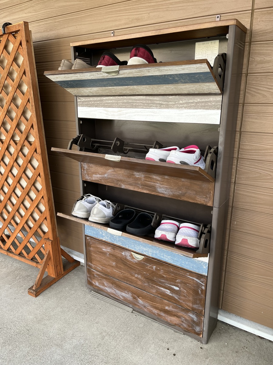 トップ > その他 > シューズボックスをリメイク👞 びーさん 2023/09/13 22:04 シューズボックスをリメイク👞 雨と陽射しにさらされていた職場の下足箱をリメイクシートとペイントでアレンジしてみました‼️ いいね 共有する 共有する X LINE リンクをコピー コメントする 1 件の返信 (新着順) ミュートしたユーザーの投稿です。 投稿を表示 チコリ 2023/09/14 00:26 いい感じに古びた木材の感じ、大好きです❣️ かっこいいアレンジですね🎶 いいね 返信する ミュートしたユーザーの投稿です。 投稿を表示 びーさん 2023/09/14 08:32 チコリ チコリさん ありがとうございます😊 最初は「えっ!」という職場の反応でしたが、ようやく馴染んできた感じです😅 いいね 返信する ミュートしたユーザーの投稿です。 投稿を表示 チコリ 2023/09/15 00:27 びーさん 元の状態はかなりボロボロだったのかな😆 びーさんは職場の環境改善に一役買ってますね😁 いいね 返信する ミュートしたユーザーの投稿です。 投稿を表示 びーさん 2023/09/15 21:37 チコリ チコリさん こんばんは♪ 元の状態写真撮るの忘れてました…💦 基本的に室内に置くものだから撥水加工じゃないのか雨の水玉模様がついてしまってました。 最初はステインを塗ってみたんですが、 ますますヘンテコになって…結果こうなりました😙 いいね 返信する