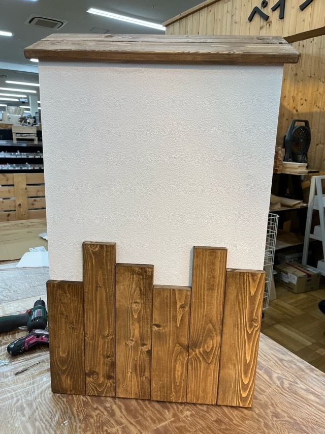 トップ > その他 > キャスター付壁風シェルフ Smile 2023/01/06 18:42 キャスター付壁風シェルフ 今年最初のWSは、キャスター付壁風シェルフでした。 とっても可愛くて予約した時から楽しみにしていたWSでした。 表面の板は、白い壁紙が貼ってあります。壁紙の貼る練習が出来て濃い内容で大満足です。 中は棚になっていて使わない時はひっくり返して隠せるのでとっても便利です。 初のWSに檸檬さんとご一緒することができとっても楽しいWSでした。 いいね 共有する 共有する X LINE リンクをコピー コメントする 8 件の返信 (新着順) ミュートしたユーザーの投稿です。 投稿を表示 frau0920 2023/01/06 21:14 ちょこりんさん こんばんは😃🌃 収納も充実していてお洒落なシェルフですね💞 私もマイストアで開催したら作りたいと思います🎵 いいね 返信する ミュートしたユーザーの投稿です。 投稿を表示 Smile 2023/01/09 17:13 frau0920さん ありがとうございます。 収納が出来て隠せて可愛くて最高のシェルフです。 マイ店舗であれば是非、参加して下さいね。 いいね 返信する ミュートしたユーザーの投稿です。 投稿を表示 はならん 2023/01/06 21:09 ちょこりんさん〜 これって今年作ってみたい作品ですわー🤗 壁は壁紙なんですね〜 ペンキきれい塗るの大変って思っけどよかった〜 貴重な情報ありがとう いいね 返信する ミュートしたユーザーの投稿です。 投稿を表示 Smile 2023/01/09 17:11 はならんさん ありがとうございます。 塗装って作品が大きくなるほど大変ですよね。 壁紙も貼るのはそんなに難しくないと思うので機会があれば是非、参加してみて下さいね。 いいね 返信する ミュートしたユーザーの投稿です。 投稿を表示 ハリー 2023/01/06 21:03 えっ🤯外側は壁紙⁉️中は塗装なんですか⁉️ いいね 返信する ミュートしたユーザーの投稿です。 投稿を表示 Smile 2023/01/09 08:10 ハリーさん おはようございます。 そうですよ。 表面の板は全て壁紙ですよ。 あとは、塗装しました。 機会あれば是非、参加してみて下さいね。 いいね 返信する ミュートしたユーザーの投稿です。 投稿を表示 ちょこっぺ 2023/01/06 20:51 内容の濃いWSなんですね😱近隣店舗で開催されたらぜひ作りたいです✨ いいね 返信する ミュートしたユーザーの投稿です。 投稿を表示 Smile 2023/01/09 08:08 ちょこっぺさん おはようございます。 ありがとうございます。 壁紙貼ったりノコギリカットしたり…板が厚いのでカットするの大変でアドバイザーに助けてもらいました(笑) マイ店舗で開催されたら是非、参加してみて下さいね。 いいね 返信する ミュートしたユーザーの投稿です。 投稿を表示 源 2023/01/06 20:26 お疲れ様♪ 壁のついたてかと思ったら裏があったんですね! 忍者屋敷になりそうですね! 素敵に出来ていますね! 作って見たいですね! いいね 返信する ミュートしたユーザーの投稿です。 投稿を表示 Smile 2023/01/09 07:27 源さん おはようございます。 ありがとうございます。 本当に忍者屋敷のようですよね何を隠そうかしら…(笑) とっても楽しいWSでしたので機会あれば参加してみて下さいね。 いいね 返信する ミュートしたユーザーの投稿です。 投稿を表示 junko 2023/01/06 19:48 すごい! 壁紙貼りも自分でやるんですね。 綺麗にできてますね☺️ いいね 返信する ミュートしたユーザーの投稿です。 投稿を表示 はっちゃん 2023/01/06 20:11 裏側ってこうなってるんだなぁ〜 いいね 返信する ミュートしたユーザーの投稿です。 投稿を表示 Smile 2023/01/09 07:25 junko さん おはようございます。 ありがとうございます。 壁紙は、難しくてなかなか出来ませんが、1人で貼るのは難しいので私は檸檬さんにお手伝いして頂きアドバイザーさんのアドバイスをもらいながら貼りましたよ。 そのお陰で綺麗に貼ることができました。 いいね 返信する ミュートしたユーザーの投稿です。 投稿を表示 Smile 2023/01/09 07:26 はっちゃんさん 裏側は、棚は全て塗装してありますよ。 いいね 返信する ミュートしたユーザーの投稿です。 投稿を表示 おーくみ 2023/01/06 19:33 わあ、素敵ですね😃 作ってみたいです✨ いいね 返信する ミュートしたユーザーの投稿です。 投稿を表示 Smile 2023/01/09 07:21 おーくみさん おはようございます。 ありがとうございます。 機会あれば是非、作ってみて下さいね。 いいね 返信する ミュートしたユーザーの投稿です。 投稿を表示 きょろっち 2023/01/06 19:29 このシェルフは今一番作りたいWSです😆 壁紙を貼るのですね。貼ったことがないのでますますやってみたいです😄 私も作ることができたら同じ配色かな💕 いいね 返信する ミュートしたユーザーの投稿です。 投稿を表示 はっちゃん 2023/01/06 20:11 作りたくてもタイミングが合わない… いいね 返信する ミュートしたユーザーの投稿です。 投稿を表示 はっちゃん 2023/01/06 20:11 作りたくてもタイミングが合わない… いいね 返信する ミュートしたユーザーの投稿です。 投稿を表示 Smile 2023/01/09 07:18 きょろっちさん おはよ