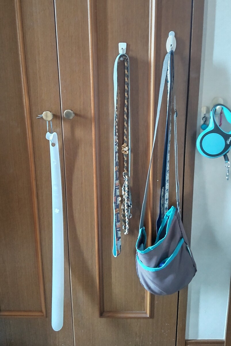 我が家も玄関のドアにマグネットフックにブラブラしてます😅