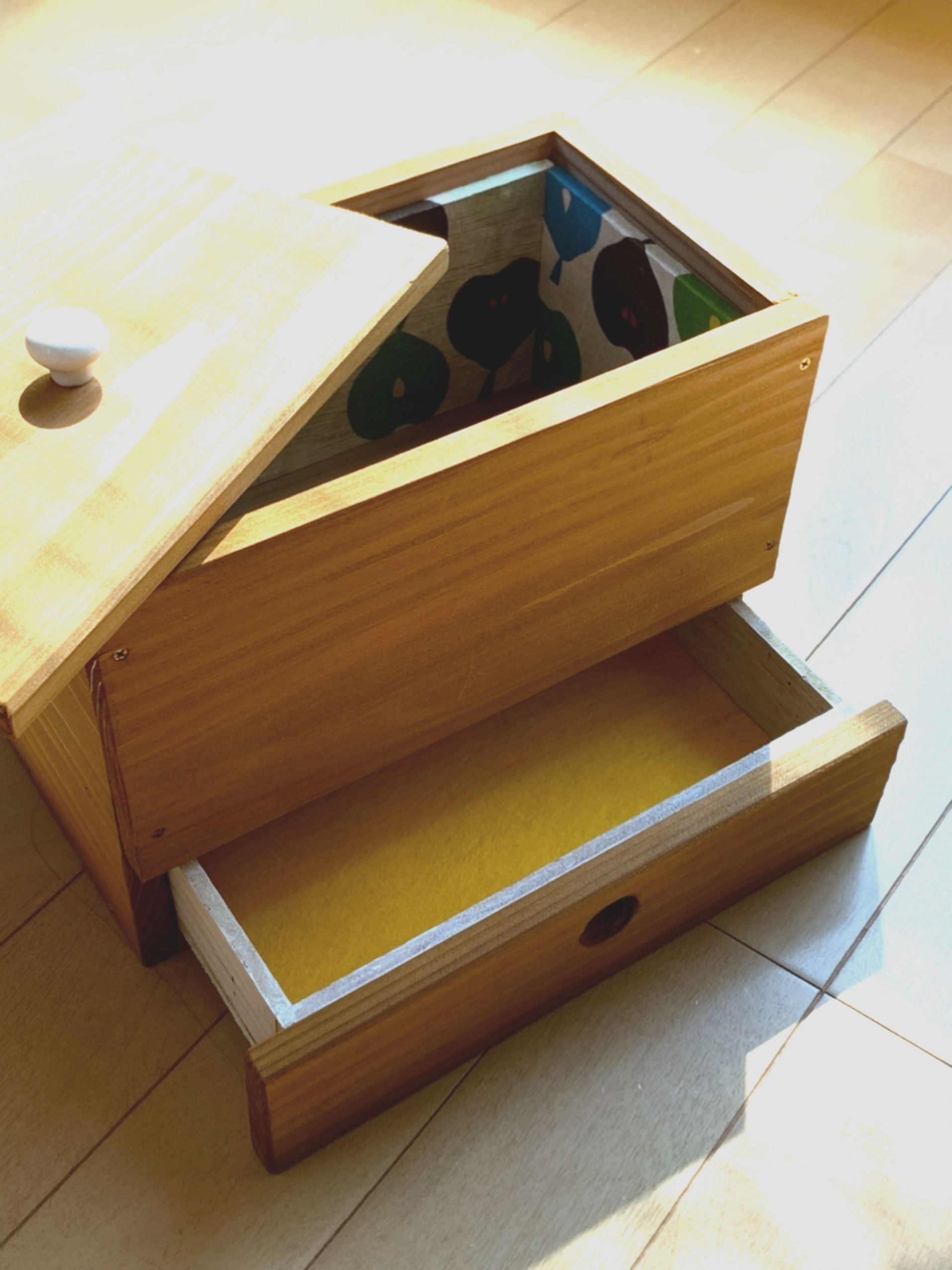 投稿を表示内箱の模様がステキですね、小引き出しの白も効いてます😊