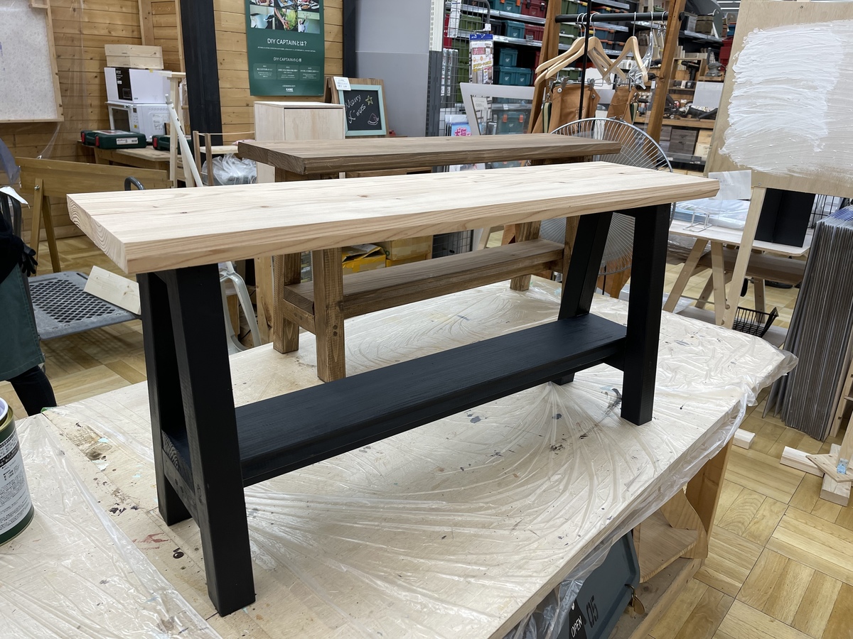 ブラックの脚と、蜜蝋クリームの自然な光沢と木目の美しさの対比がとても素敵です💖