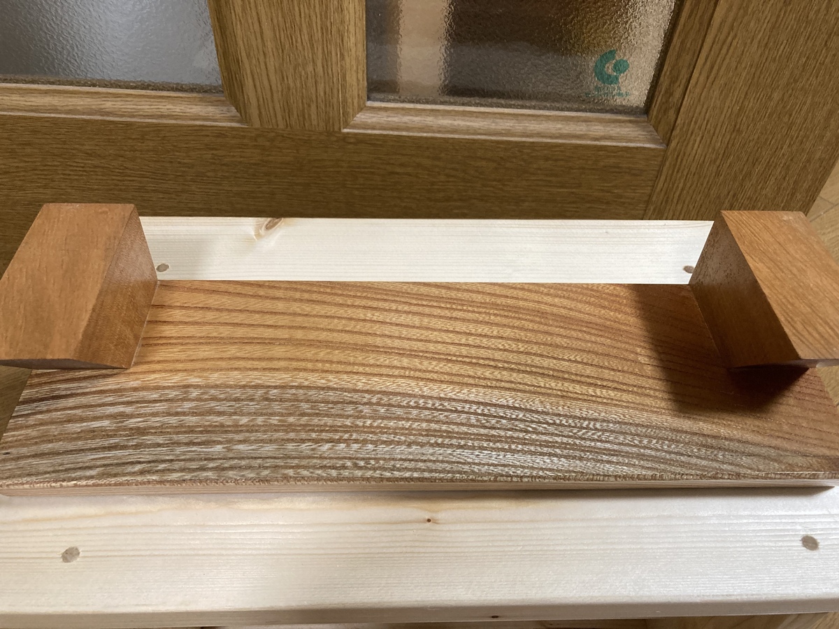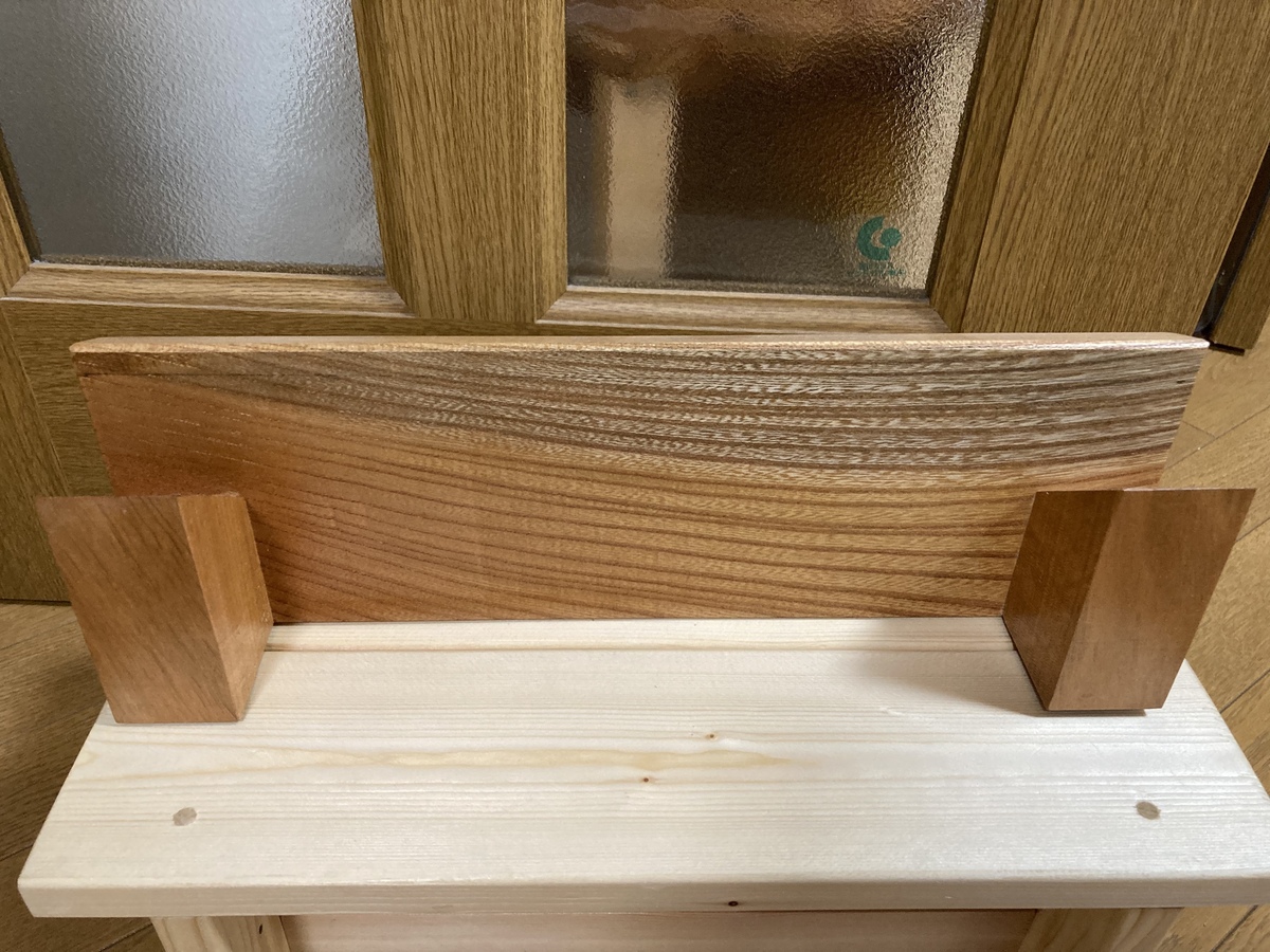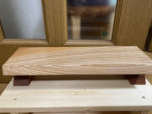 欅材、サクラ材の残り材を贅沢に使った飾り台です😊👍