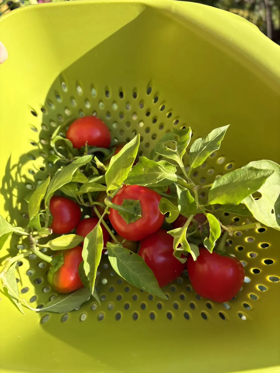 夏は暑くて全くならなかったパプリカが温度が下がりたくさんの実をつけはじめ、ようやく色づいたので収穫