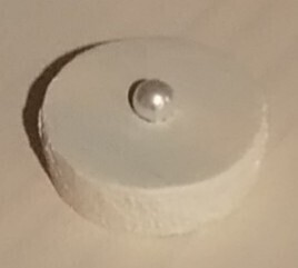 | 取っ手にホールソーのドリル穴があったので、パールビーズをあしらってみました。 | ![]() |