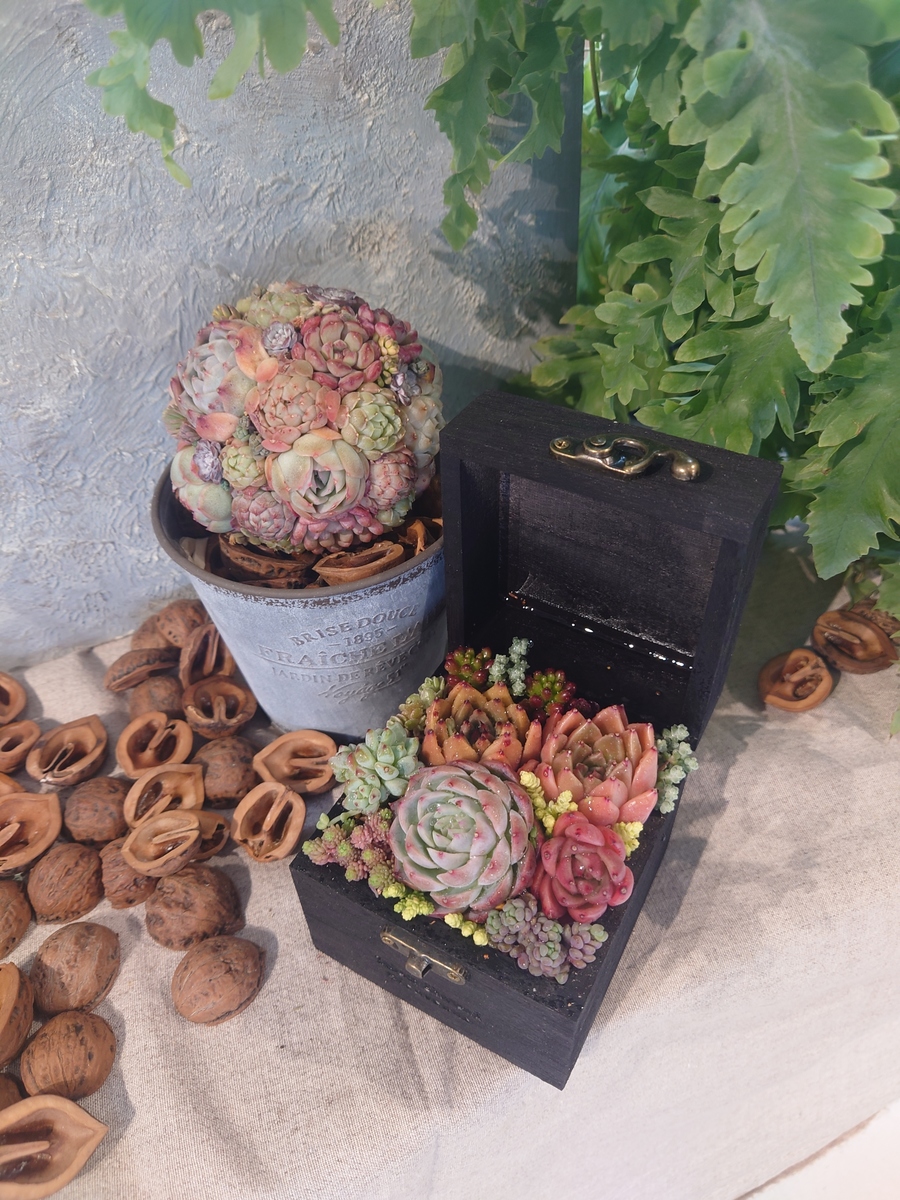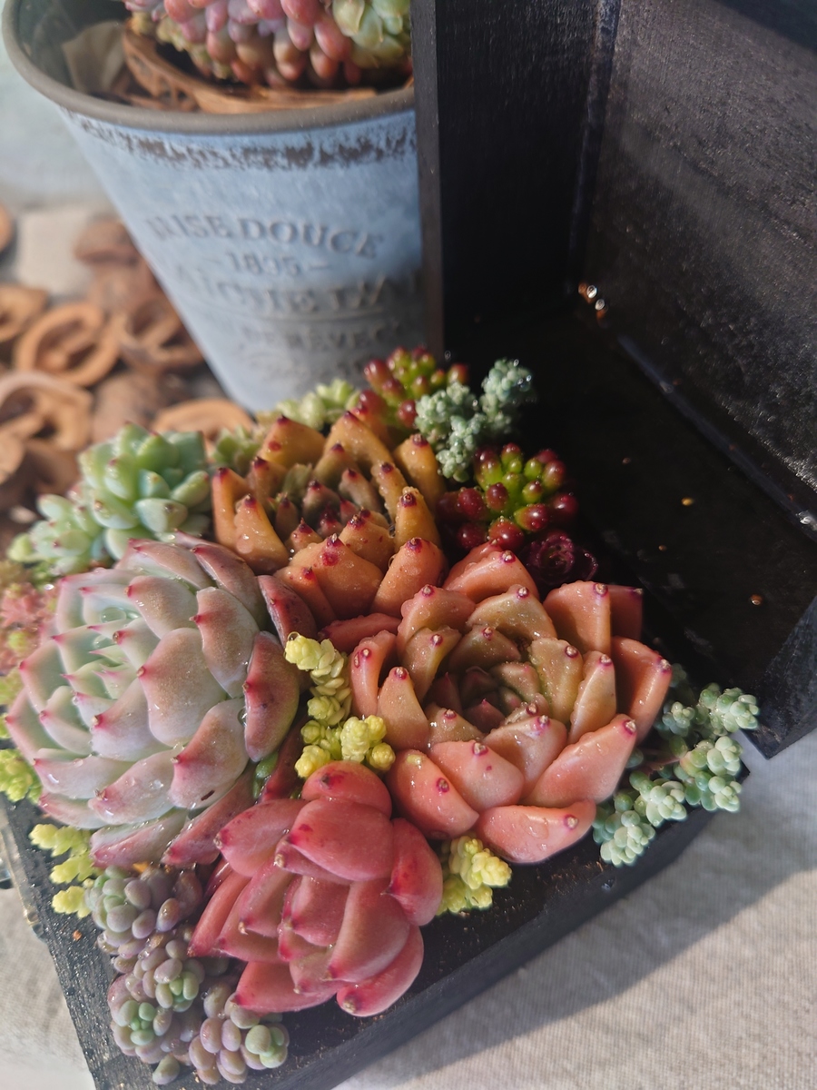 投稿を表示ツンツンした感じのエケベリアが宝石箱にあっていて素敵ですね。😍💕
