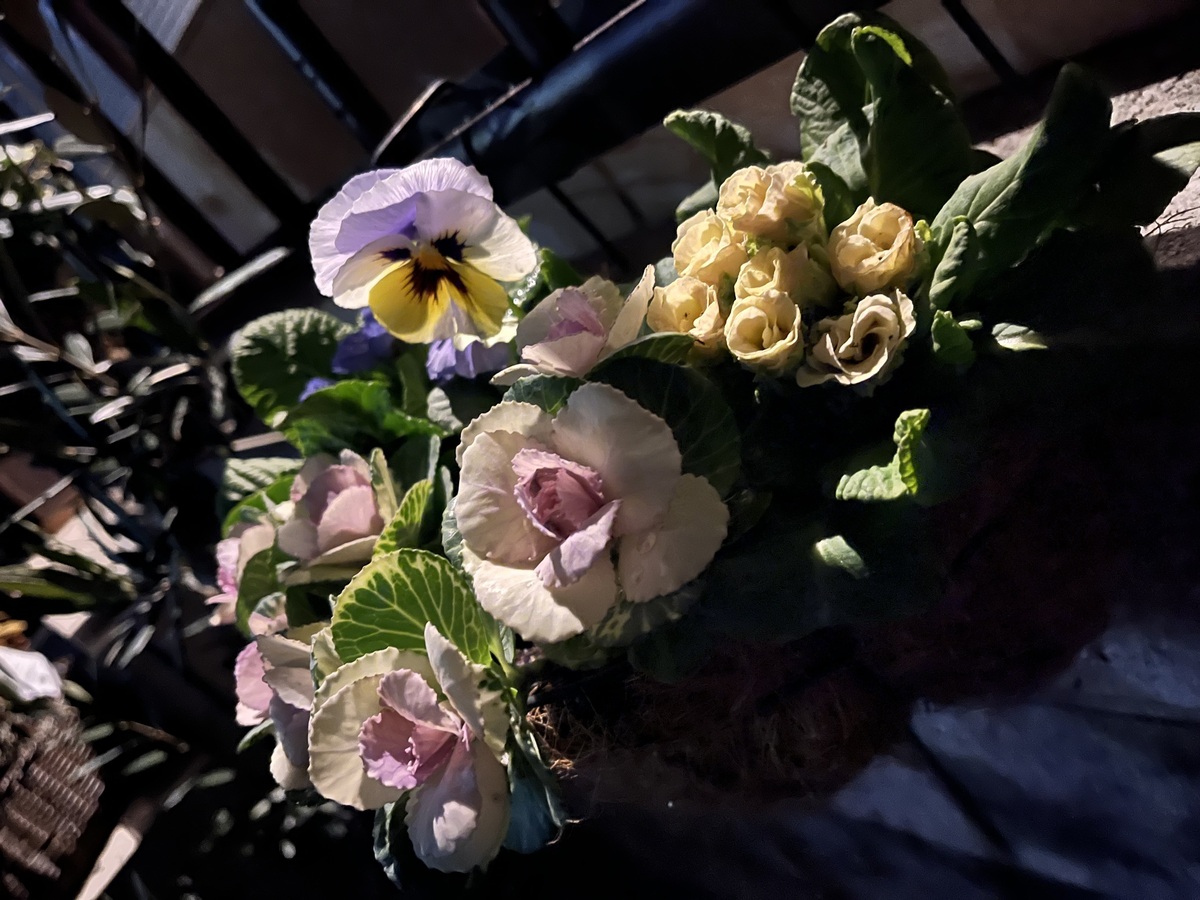 投稿を表示最近の葉牡丹…可愛いものが沢山ですよね!!お安くなってたらつい手が出てしまいますよね😊素敵なハンギングですね😍👍