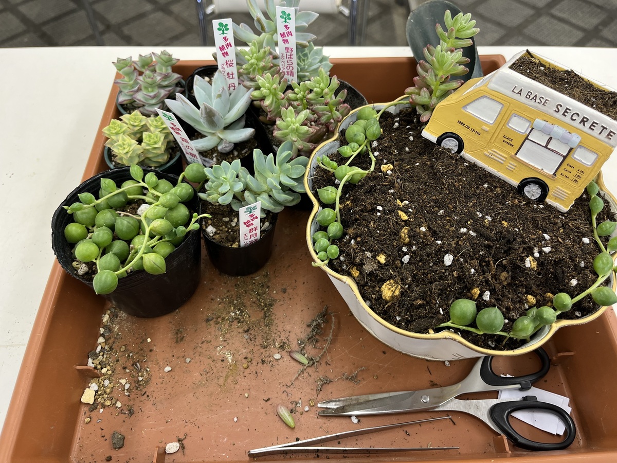 トップ > グリーン > キッチンカーの箱庭 Mayu 2023/04/30 20:58 キッチンカーの箱庭 近くの園芸店さんで久しぶりに多肉の寄せ植えをしてきました😊 白色のブリキ缶は予約時に選んで、 黄色のキッチンカーはくじ引きで🪴 グリーンネックレスを周りに入れてみたけど…完成したらセダムをいろいろ入れ過ぎで見えなくなりました😅💦 多肉を触ってる時間は…楽しいですね🎶🤭 いいね 共有する 共有する X LINE リンクをコピー コメントする 1 件の返信 (新着順) ミュートしたユーザーの投稿です。 投稿を表示 どりい 2023/05/01 08:45 キッチンカーの小さな鉢がいいアクセントになってますね❣️ 可愛らしいです😊💕 いいね 返信する ミュートしたユーザーの投稿です。 投稿を表示 Mayu 2023/05/01 21:56 どりいさん ありがとうございます😊 日にちが違う寄せ植えの時は…キッチンカーではなく、小さなお家鉢だったんです🎶それも惹かれたけど…予定があったので、キッチンカーで参加しました☺️ 高さが違う二箇所にどうやってしようって考えながら寄せ植えも楽しいですね🎶 いいね 返信する