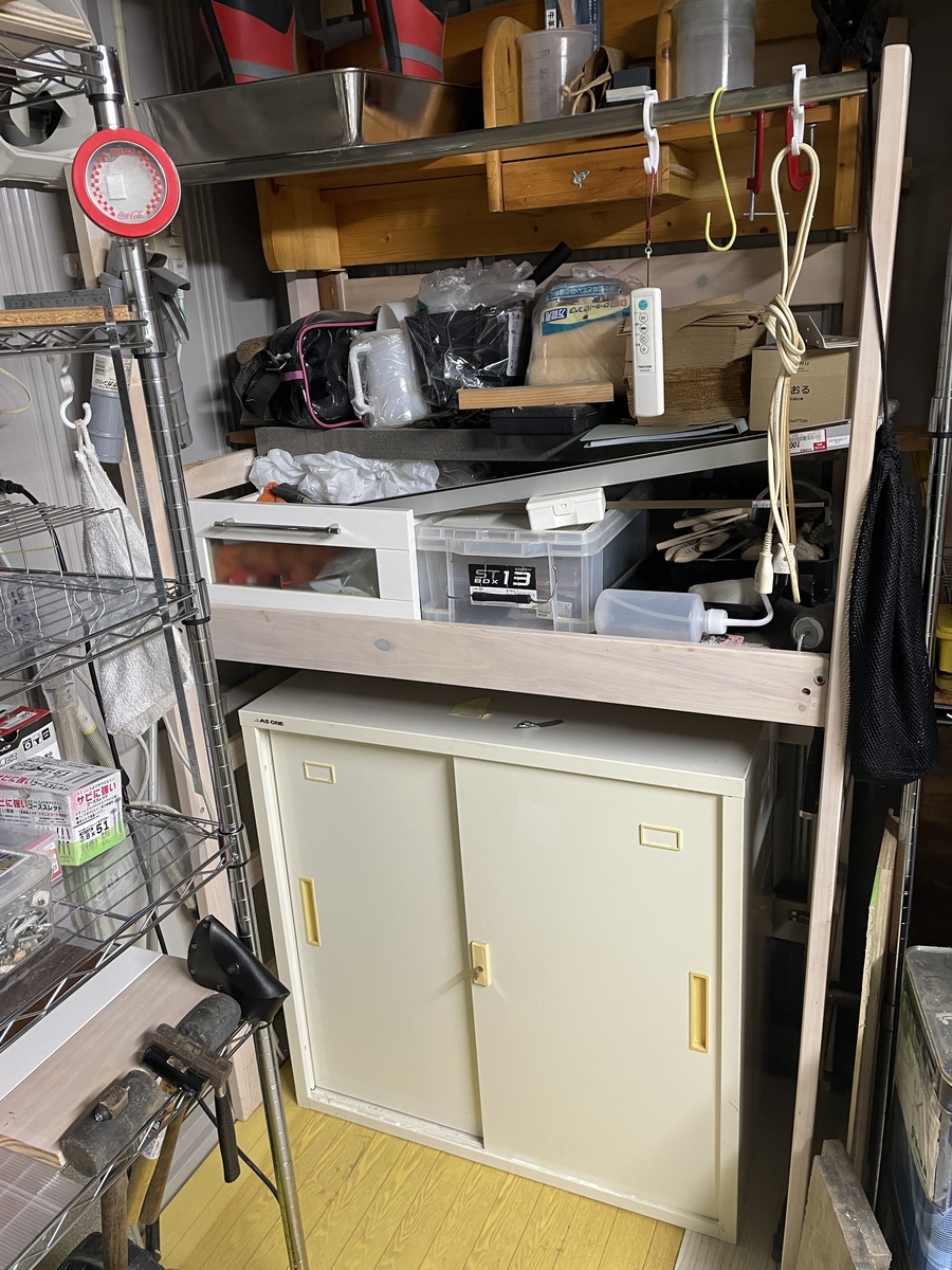 ん・・・???こんなに塗料を保管しているのに金属製のラックに保管しないとダメじゃない?