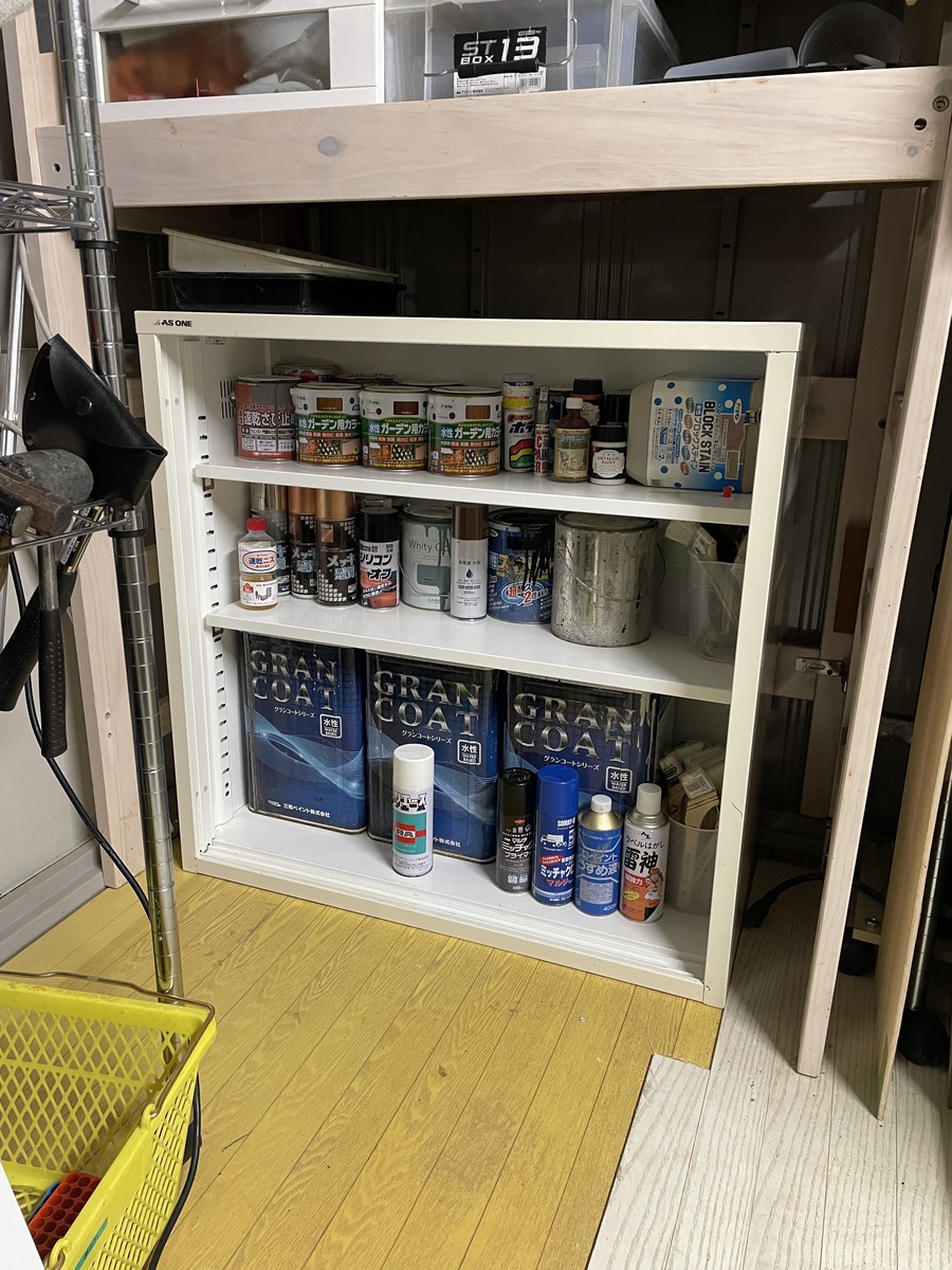 私の塗料は物置の鉄製棚と家の中にも紙のラックに入れてるけど、紙製アカンのかなぁ〜😂🙌💦