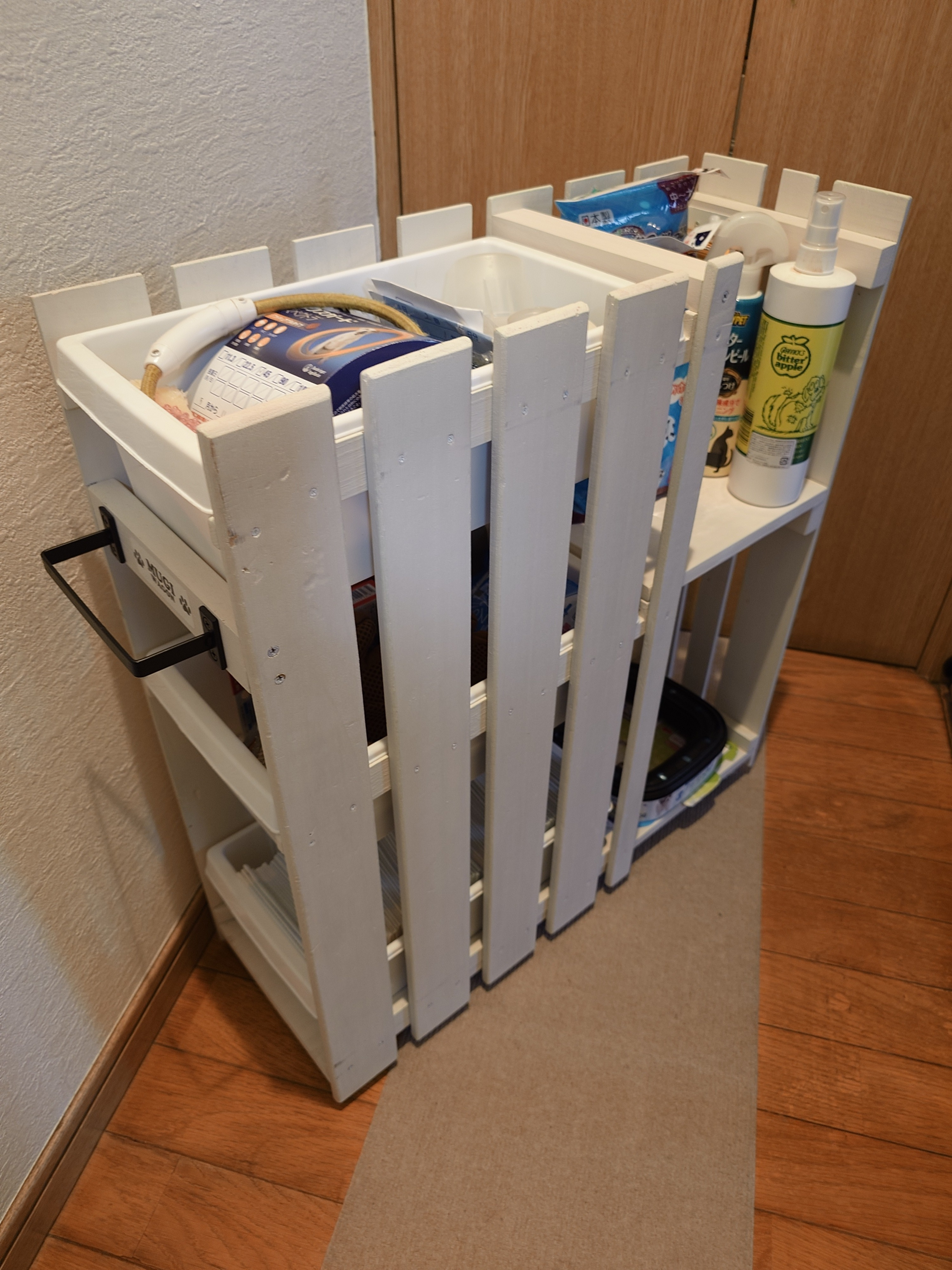 トップ > ペット > インテリア > わんこ専用ワゴン ちゃんぽん 2025/10/19 15:13 わんこ専用ワゴン すのこをメイン材として、わんこ用品をまとめて収納できるワゴンを作りました。手前はよく使う小物類用として100均のプラケースを3段、奥側には背の高いボトル類など置けるようにエリア分けしました。狭いクローゼットの限られた隙間にピッタリ収まるようにサイズを決めています。 インテリア部門【わんわん祭り2025】 いいね 共有する 共有する X LINE リンクをコピー コメントする 3 件の返信 (新着順) ミュートしたユーザーの投稿です。 投稿を表示 ダンボ 2025/10/24 08:07 とても便利そうですね! いいね 返信する ミュートしたユーザーの投稿です。 投稿を表示 suimo 2025/10/20 22:26 すのこを利用して工夫して作られてて凄いですね。最初ワゴンって見て、ワンちゃん乗せるワゴンかな🤔と思っちゃいました。車内販売的な、ワンちゃんいかがですか〜(見るだけ)😆 使うものひとまとめに整理できていいですね。 いいね 返信する ミュートしたユーザーの投稿です。 投稿を表示 ちゃんぽん 2025/10/21 01:24 suimo コメントありがとうございます。 散歩用品やケア用品が一カ所に収納でき、そのまま家庭内販売にも出られますよ。。。 便利です♪ いいね 返信する ミュートしたユーザーの投稿です。 投稿を表示 チコリ 2025/10/20 01:45 スッキリしていて、使い勝手が良さそうですね! いいね 返信する ミュートしたユーザーの投稿です。 投稿を表示 ちゃんぽん 2025/10/21 00:52 チコリ コメントありがとうございます。 間口の狭いクローゼット下段に、同じくすのこで作ったゴミ用ワゴンと並べています。設置スペースの関係で横幅に制約がある中、目一杯モノを詰め込めるように工夫しました。 いいね 返信する ミュートしたユーザーの投稿です。 投稿を表示 チコリ 2025/10/22 00:53 ちゃんぽん DIYならではの統一感! 空間を目一杯有効活用出来ますね😁 いいね 返信する