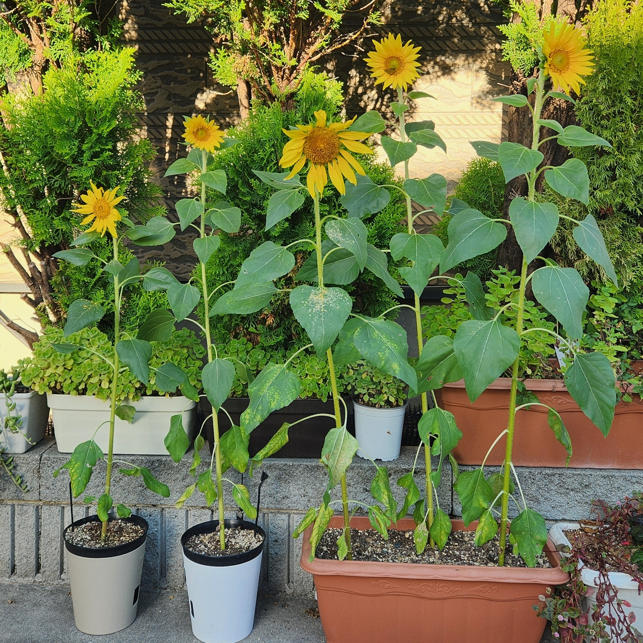 投稿を表示ひまわり10月でも咲いていて元気ですね🤗5つ並んでるのが可愛い🌻🌻🌻🌻🌻💕