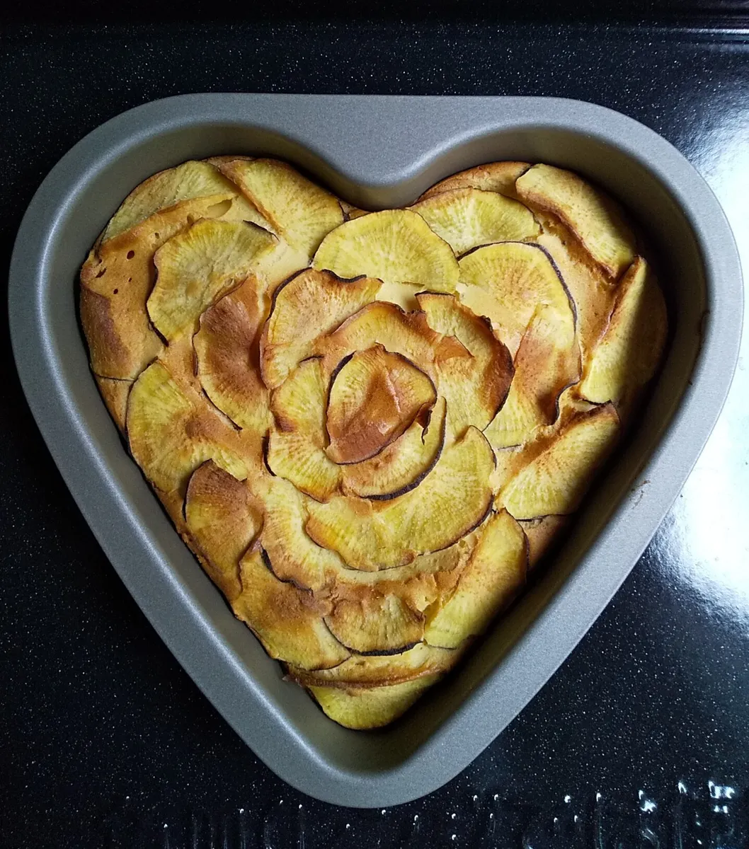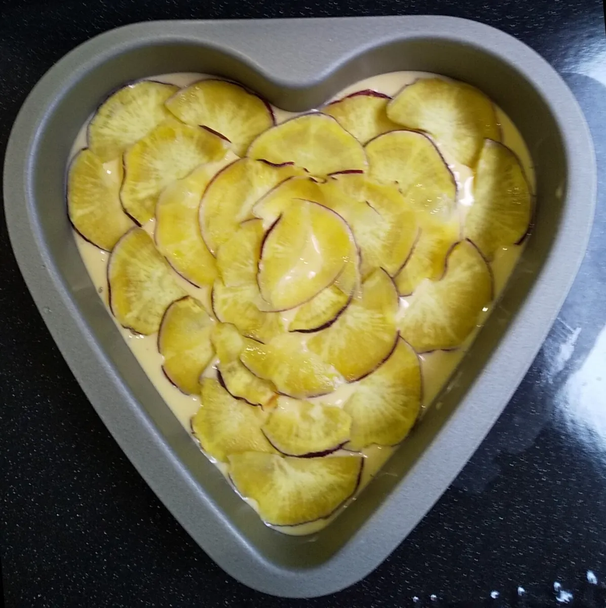 ③容器に②を流し入れ、①の🍠スライスをトッピングし、170℃に余熱したオーブンで30分焼く ![]() |