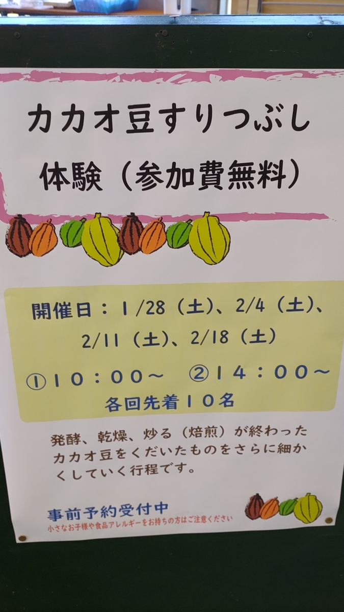 まだこのワークショップはあるので参加してみてはいかがでしょう~チョコをちょこっと食べてみよう、カカオニブハニーを作ってみよう、カカオの模型に色塗りしようなど低価格のイベント色々しています~🥰🥰