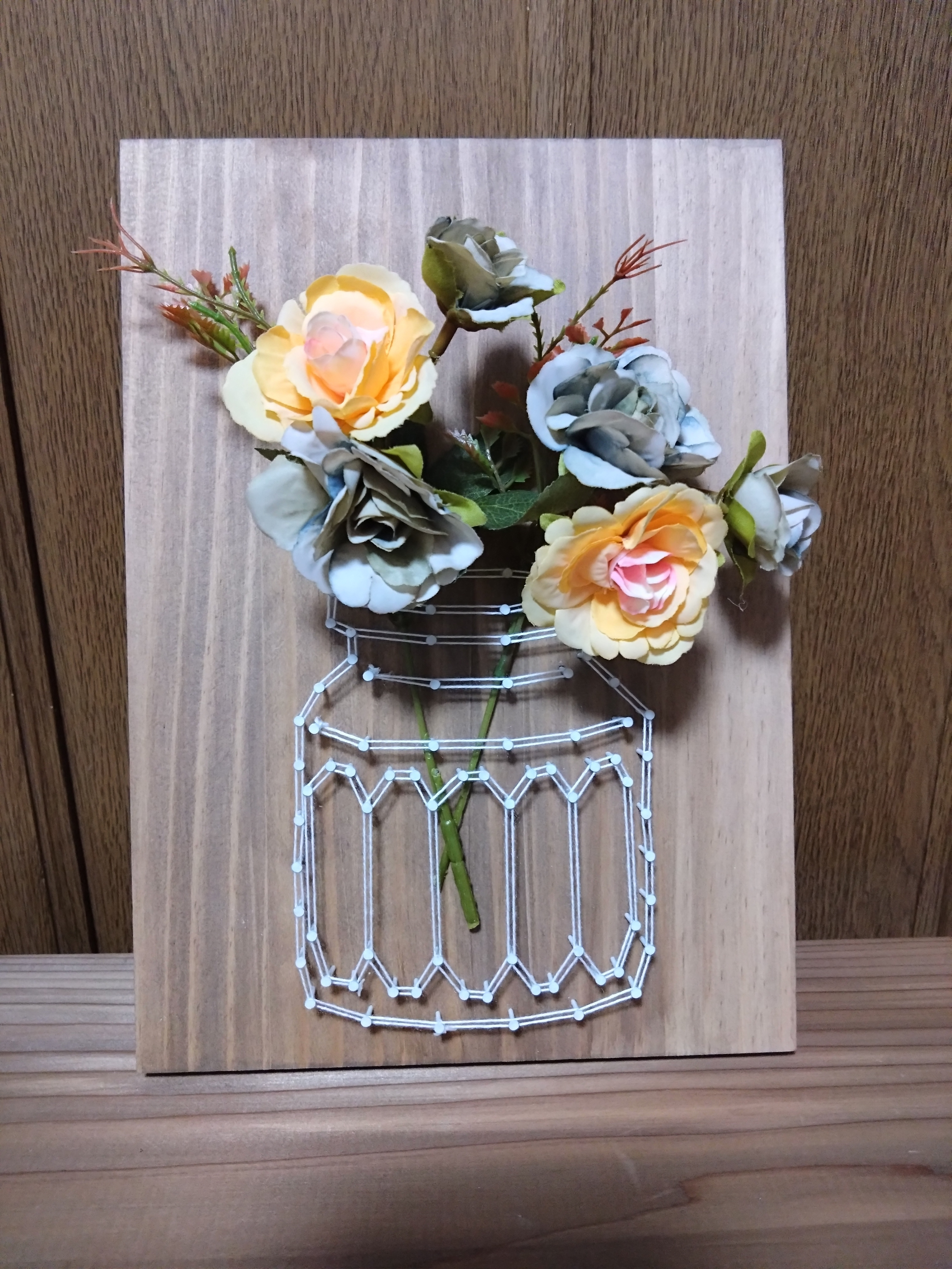 投稿を表示板の木目が綺麗に出ていて素敵な作品になりましたね。優しい色使いのお花がとても似合ってます✨