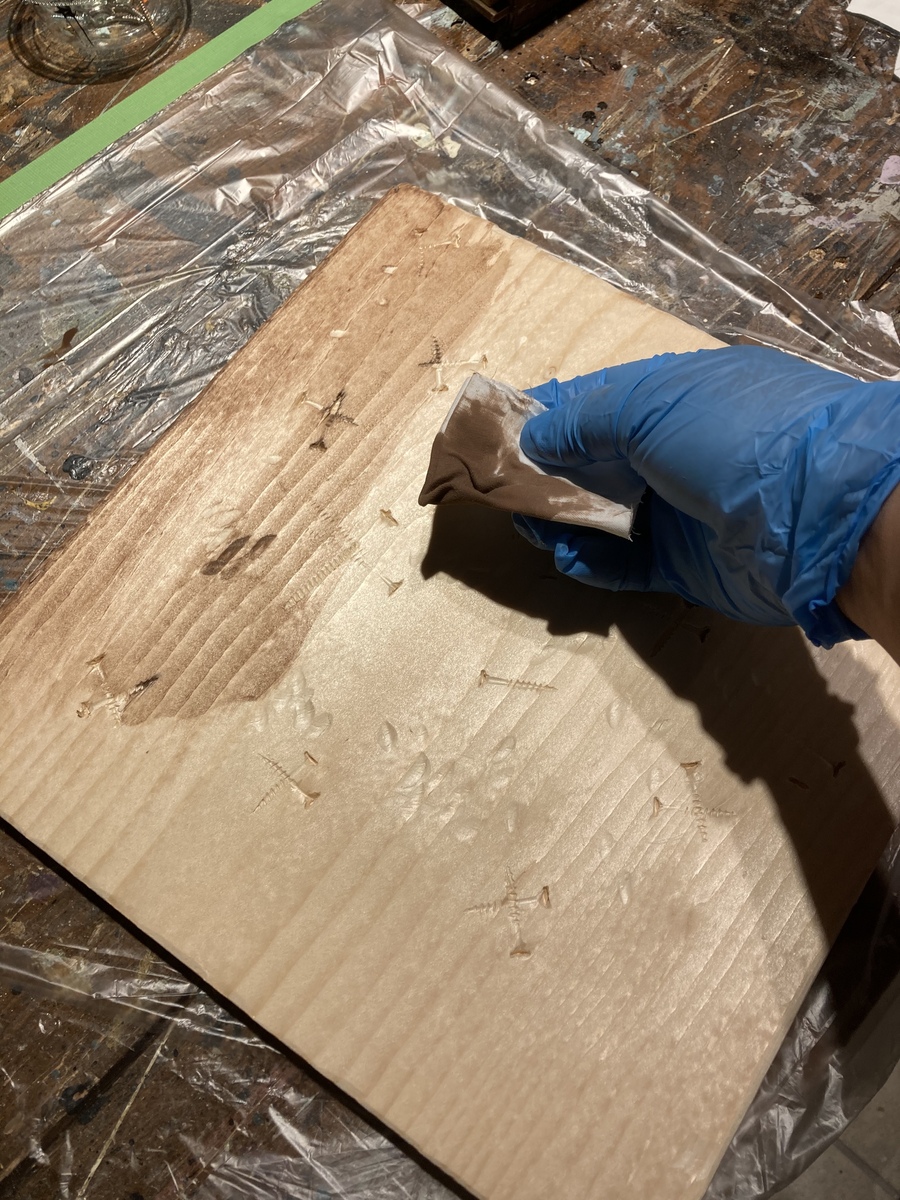 ↓ウエスを使って下地作りしました 薄く〜薄く〜 塗ったらすぐにキッチンペーパーで拭き取り。。。